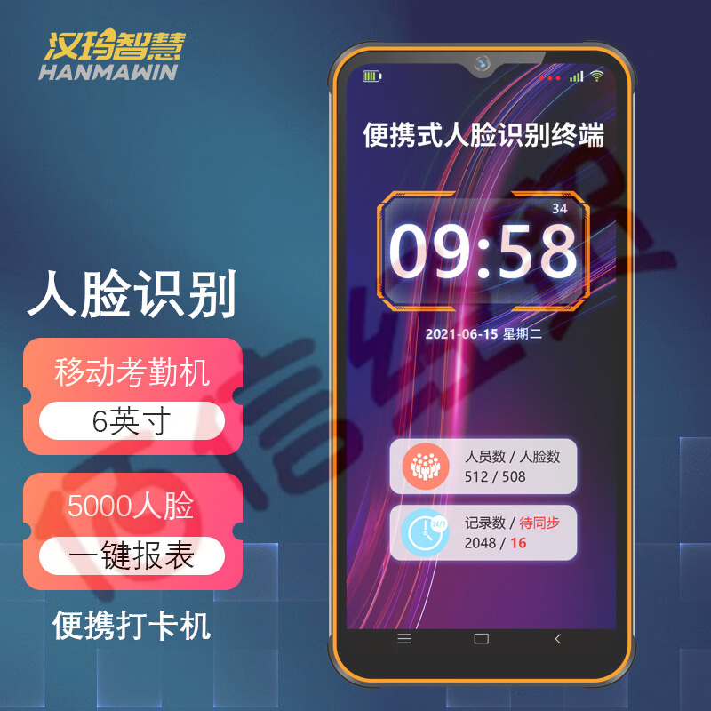 汉玛智慧(Hanmawin)人脸识别移动考勤机便携手持打卡智能管理系统智慧工地4G实时上传户外签到登记HM5106 自营