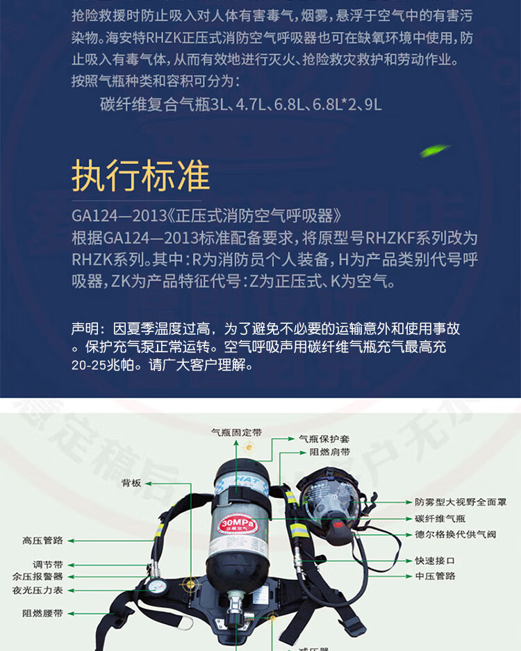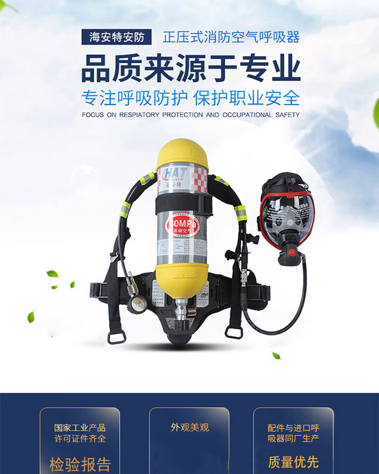 海安特RHZKF6.8/30正压式空气呼吸器 防雾防眩大视野工业空呼 红色面罩款 定制 自营