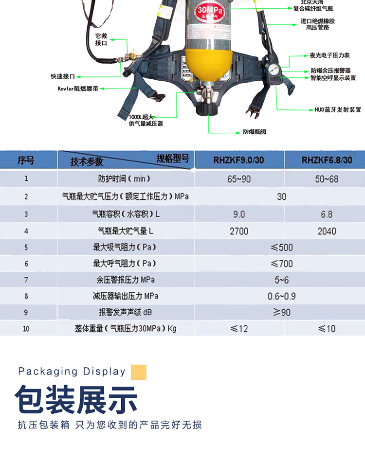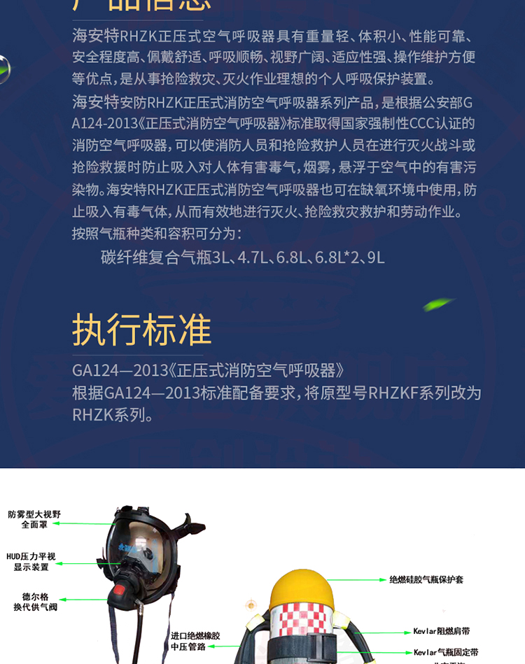 海安特RHZK6.8正压式消防空气呼吸器 3C认证防雾防眩数显压力表工业救援防护空呼 定制 自营