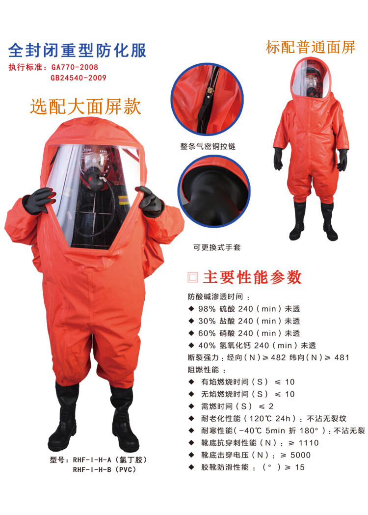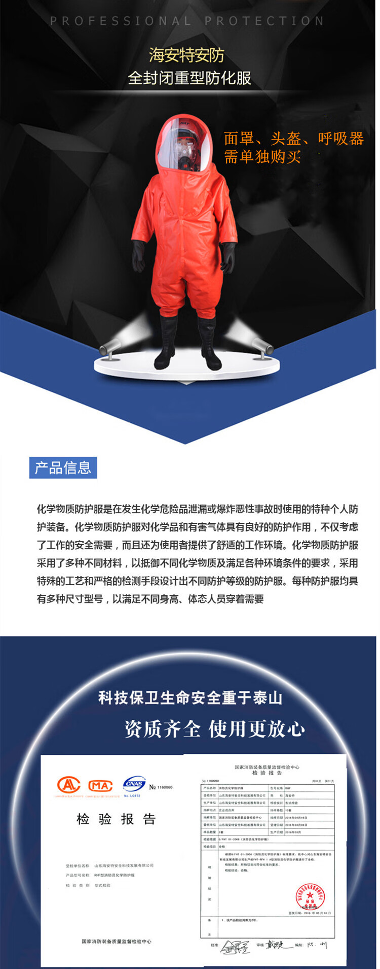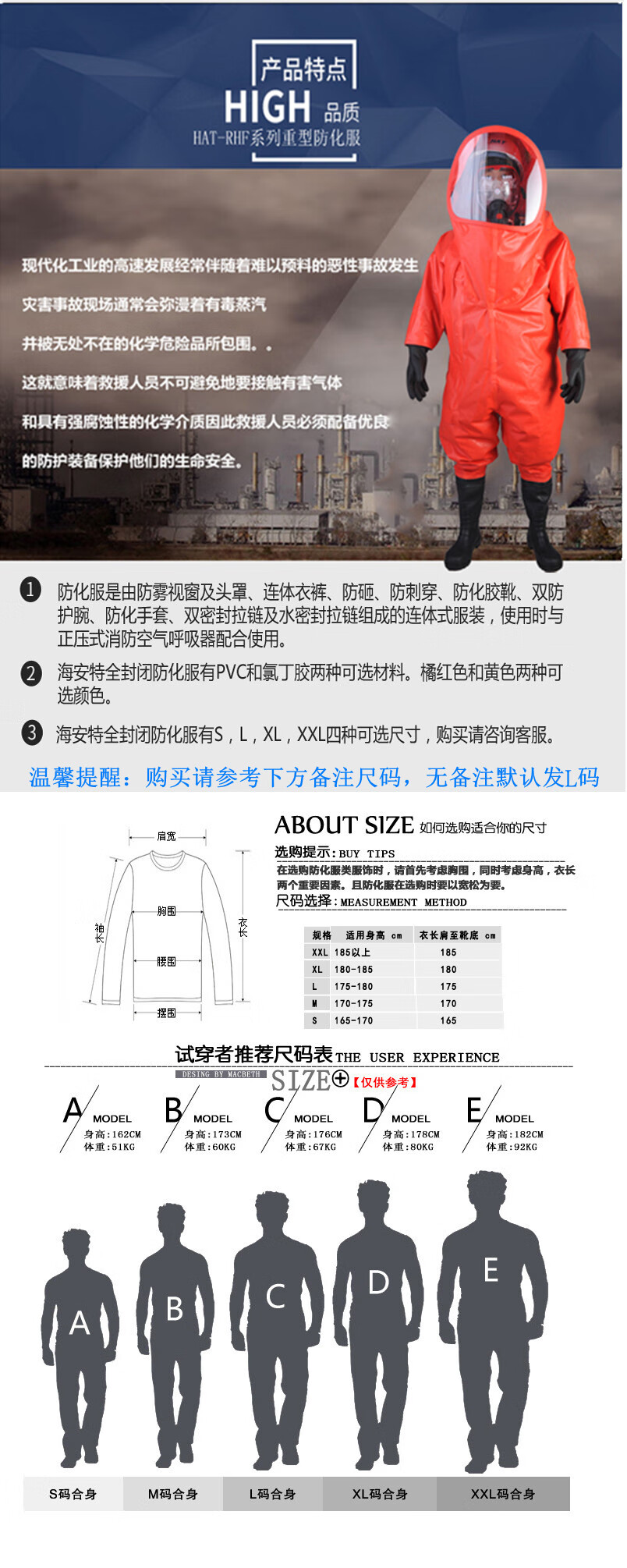 海安特RHF-I-H-B全封闭重型防化服PVC连体封闭危化环境防护服 全封闭PVC 自营