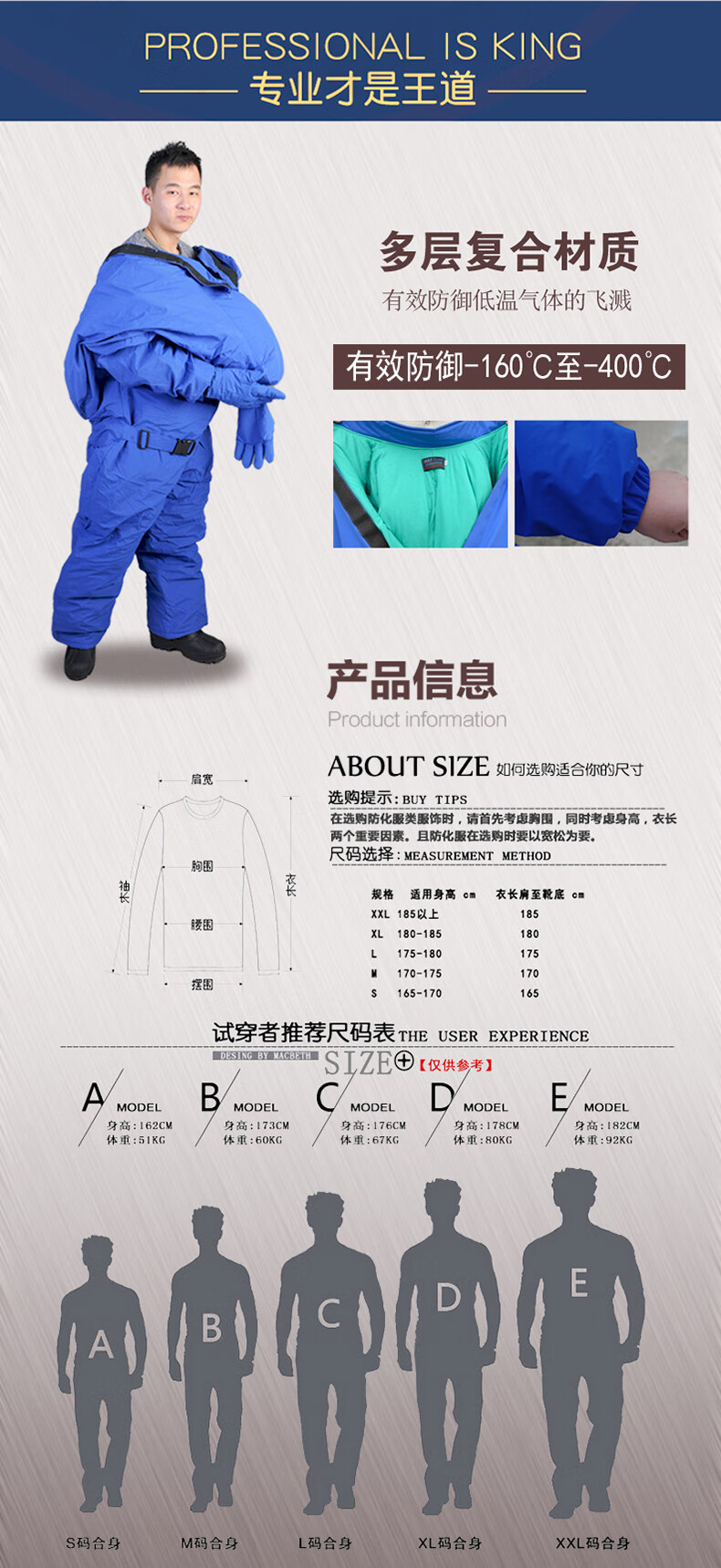 海安特 低温液氮防护服耐低温液氮防护170-185蓝色 带背囊 HAT-DW-A 自营