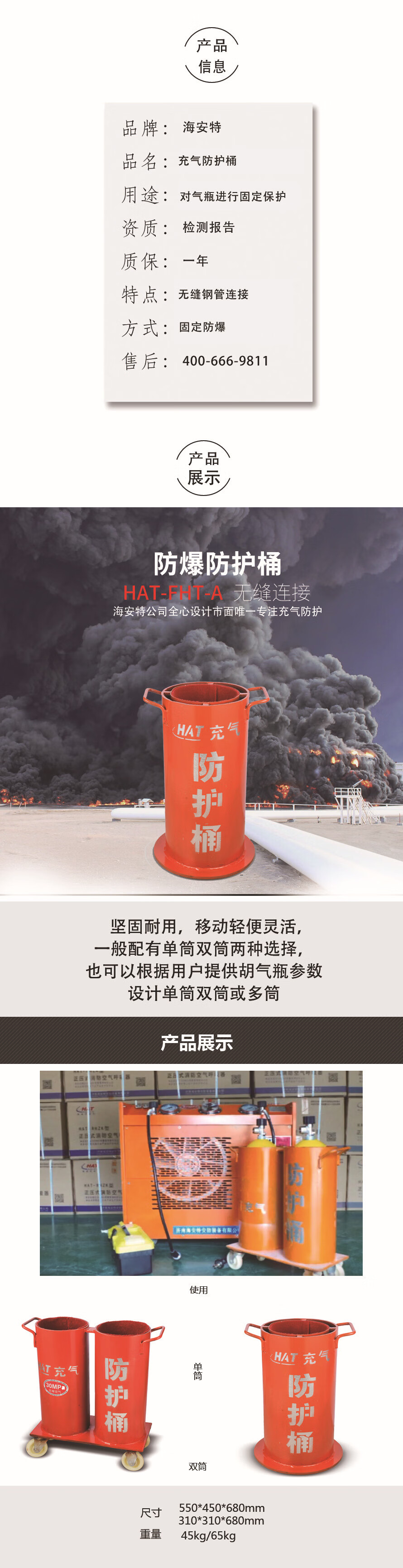 (HAT)海安特防爆充气防护桶HAT-FHT-A/B 充气防护桶 防爆桶气瓶桶气瓶套 HAT-FHT-A/B 充气防护桶 高55.5cm 自营