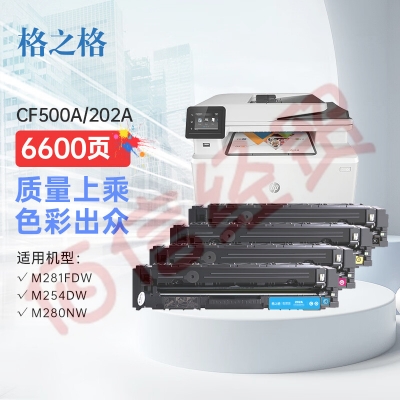 格之格202a硒鼓适用惠普m281fdw硒鼓hp m254dw m254nw m281fdn m280nw打印机墨粉盒带芯片四色套装cf500a硒鼓 自营