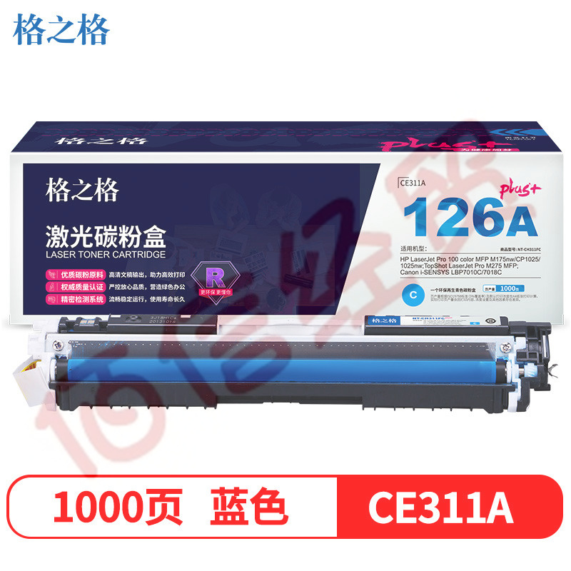 格之格 CE311A青色硒鼓适用惠普M175NW M275 CP1025 CP1025NW佳能lbp7018c墨粉盒 hp126A硒鼓 plus+版 自营