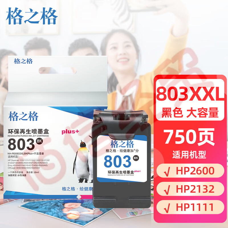 格之格803墨盒可加墨 适用hp惠普2132 2622 2621 1112 2600 2131 2130 1111打印机墨盒惠普803墨盒黑色显墨量 自营