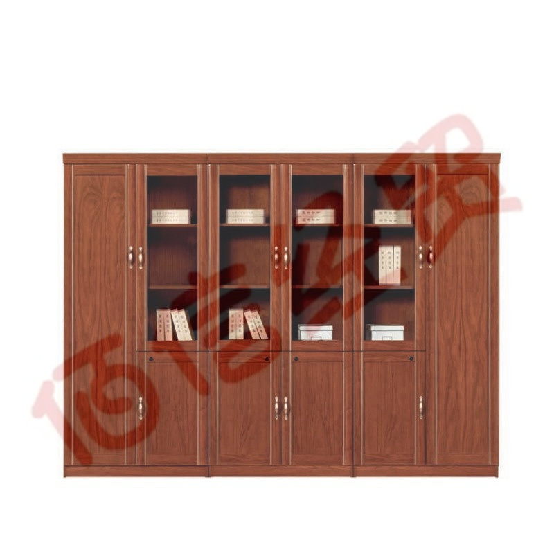 京中柜 六门书柜现代中式实木书柜落地玻璃门书架组合书橱 自营