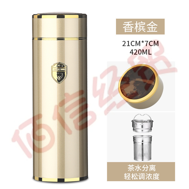 匡迪316不锈钢商务保温杯男女高档泡茶杯大容量水杯礼品定制刻印字杯 香槟金茶水分离网 420ml 自营