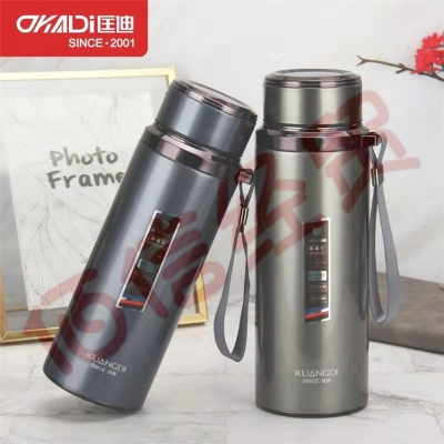 匡迪(DKADI) 真空保温杯智能温显男女士商务带过滤网带提绳大容量车载泡茶杯 尚青色 普通盖子 720ml 自营