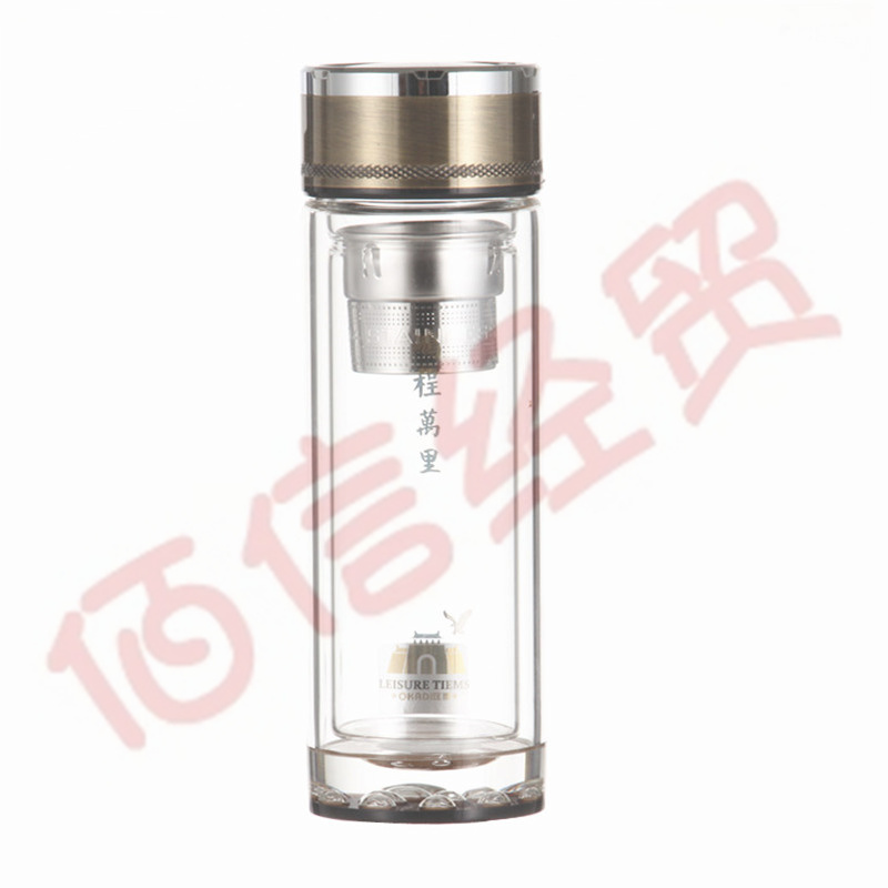 匡迪(DKADI)双层玻璃杯水晶杯办公室水杯加厚耐热泡茶杯男高档商务礼品杯 350ml鹏程万里 自营