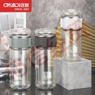 匡迪(DKADI) 匡迪茶水分离杯双层玻璃水杯子便携随手杯过滤泡茶师户外泡茶杯 2062绿色220ml 自营