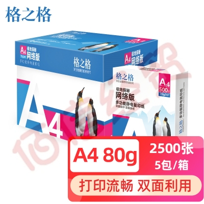 格之格 A4纸 80g A4打印纸 多功能双面复印纸 高性价比畅销款 500张/包 5包1箱(整箱2500张)极地探秘系列 自营