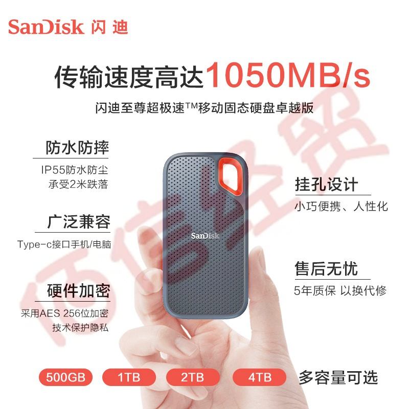 闪迪(SanDisk)1TB Nvme 移动固态硬盘(PSSD)E61至尊极速卓越版 ssd 传输速度1050MB/s IP55等级三防保护
