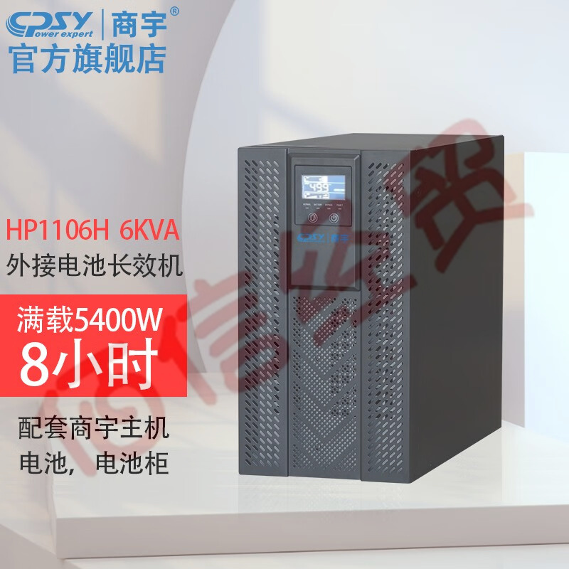 商宇UPS不间断电源HP1106H单进单出6KVA/5.4KW机房服务器应急电源30分钟-8小时套餐 续航8小时32节商宇100AH蓄电池A32电池柜 自营