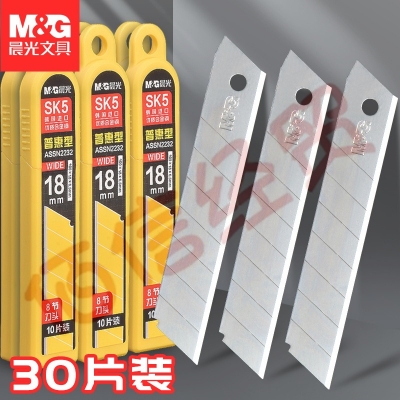晨光(M&G)大号美工刀片18m钛精钢SK5不易生锈普惠型替换刀片ASSN2232 3盒共30片【大号刀片18mm/60度】 自营