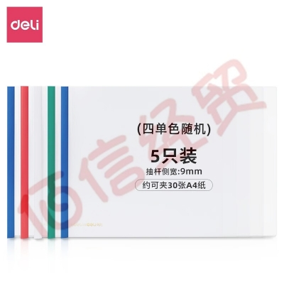 得力(deli)横款抽杆报告夹5只装透明资料夹塑料拉杆夹防水耐磨加宽加厚收纳夹学生试卷夹 颜色随机 A4/可夹30张-5只装 63101 自营
