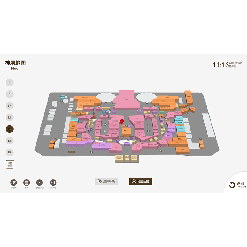 恩腾商场导航软件标识导向路线图自助查询楼层地图导航终端一体机系统商场地下室停车场导航软件 楼层索引机 定制款横屏 自营