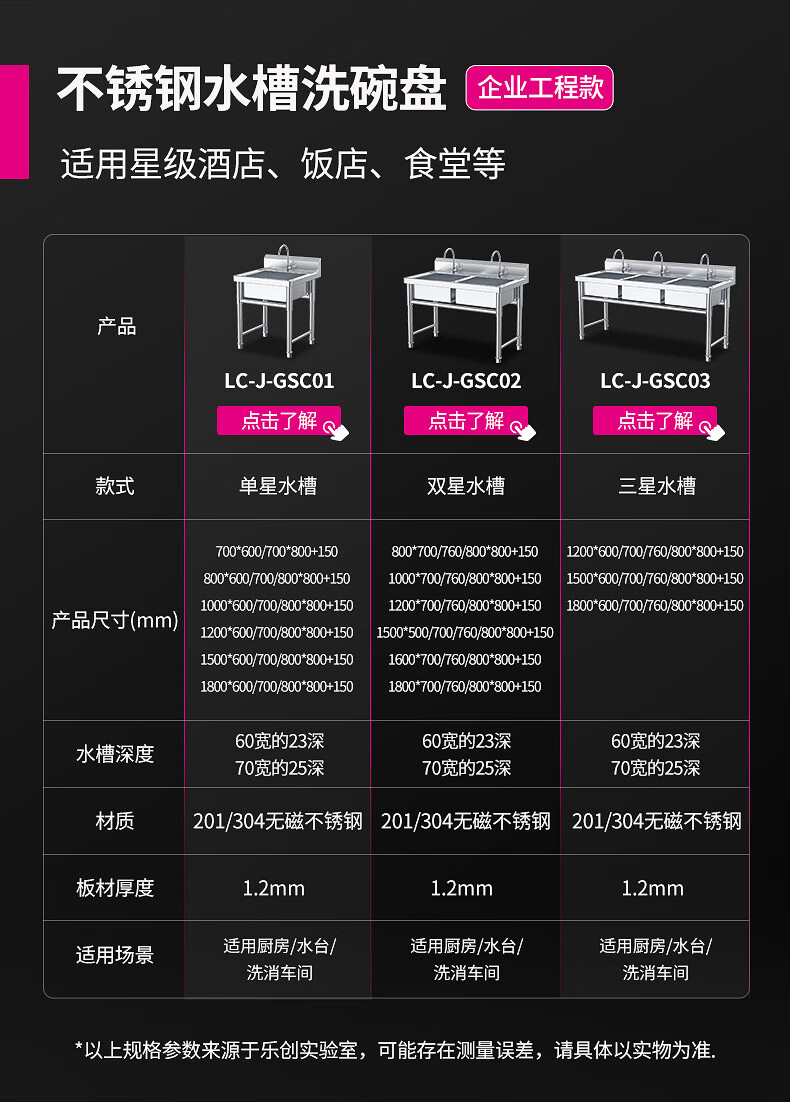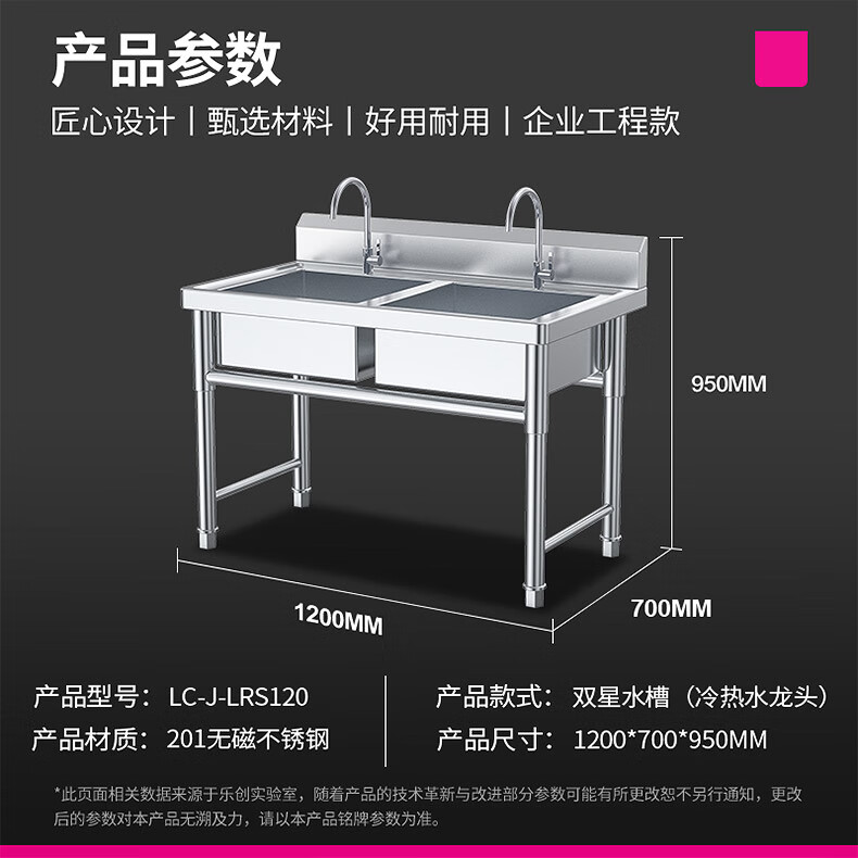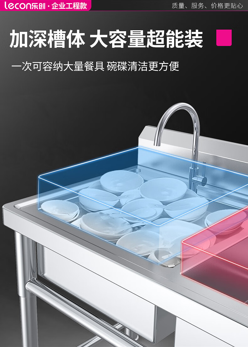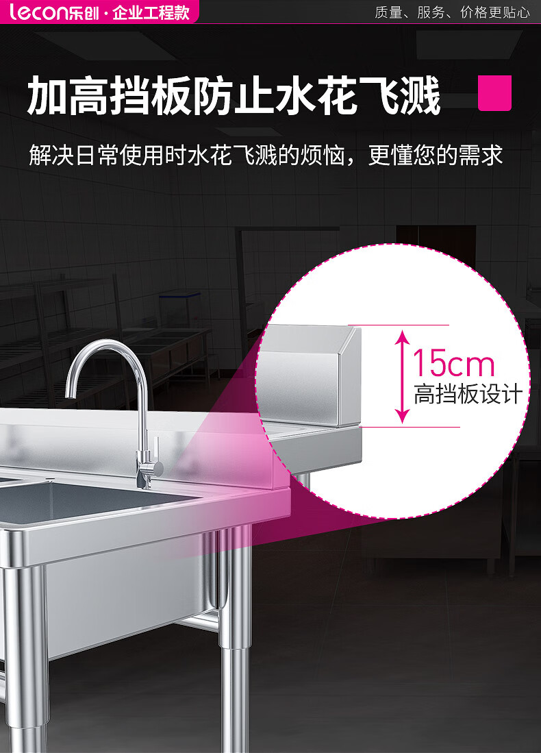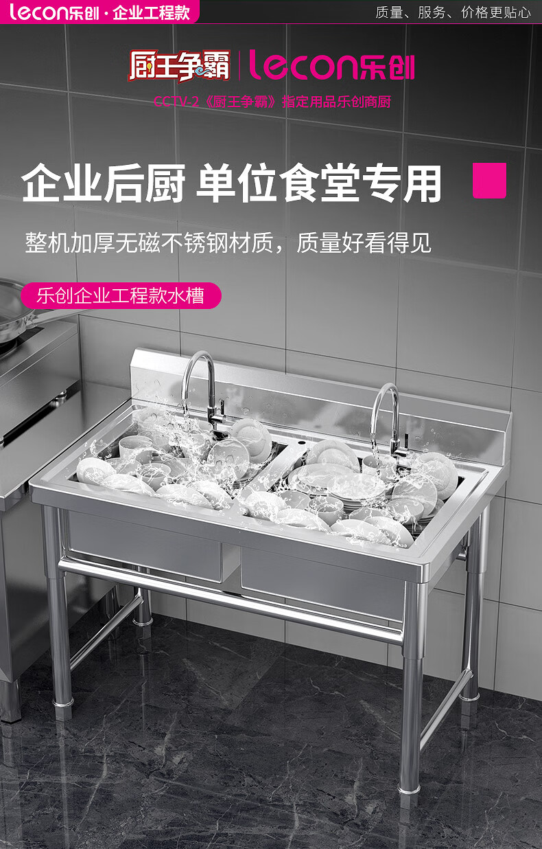 乐创(lecon)商用双星水池 201不锈钢洗碗洗菜池洗手盆 LC-J-GSC02【企业工程款】