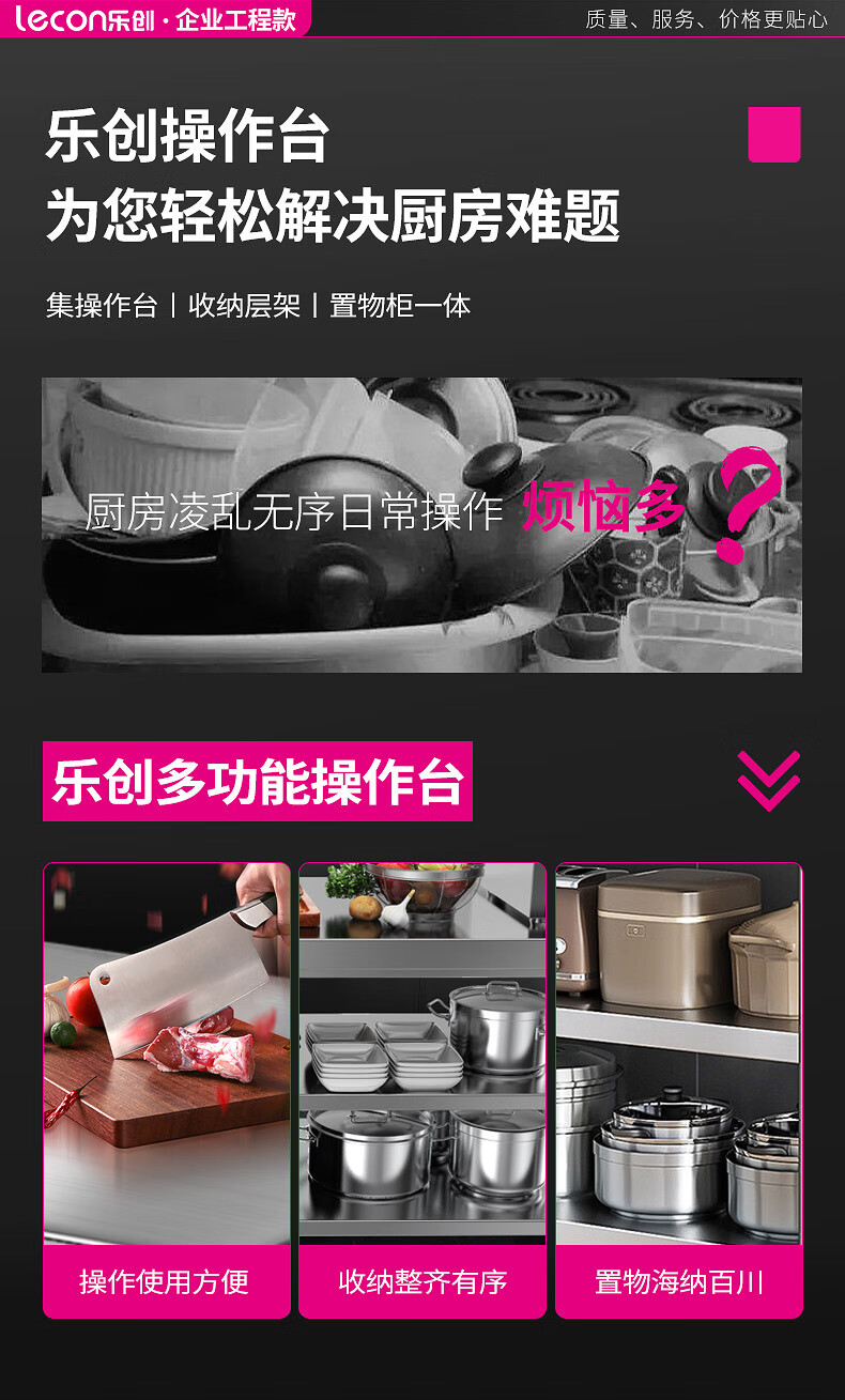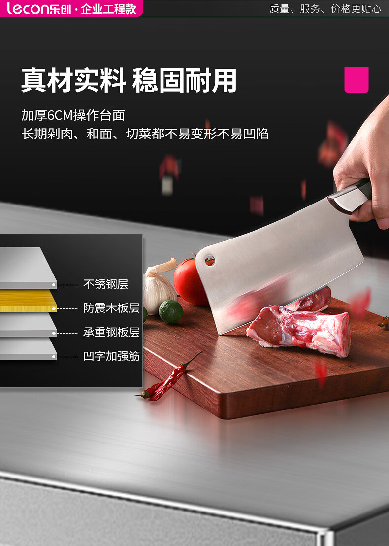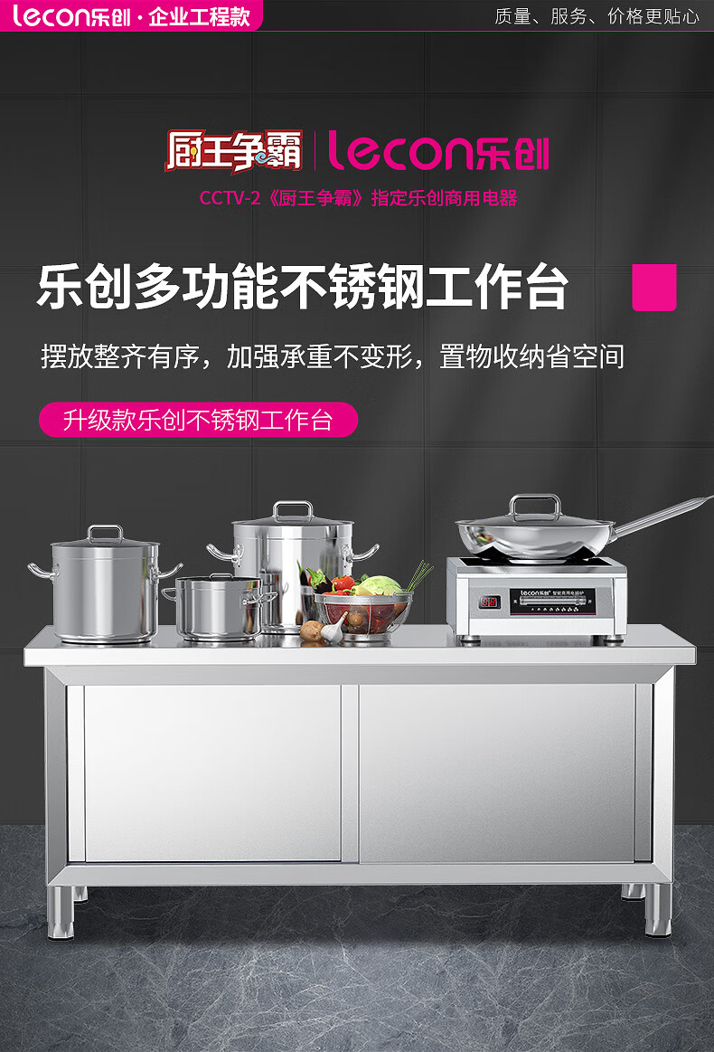 乐创(lecon)商用单通工作台 201不锈钢打荷工作台2000*1000 LC-J-DT2010【企业工程款】 自营