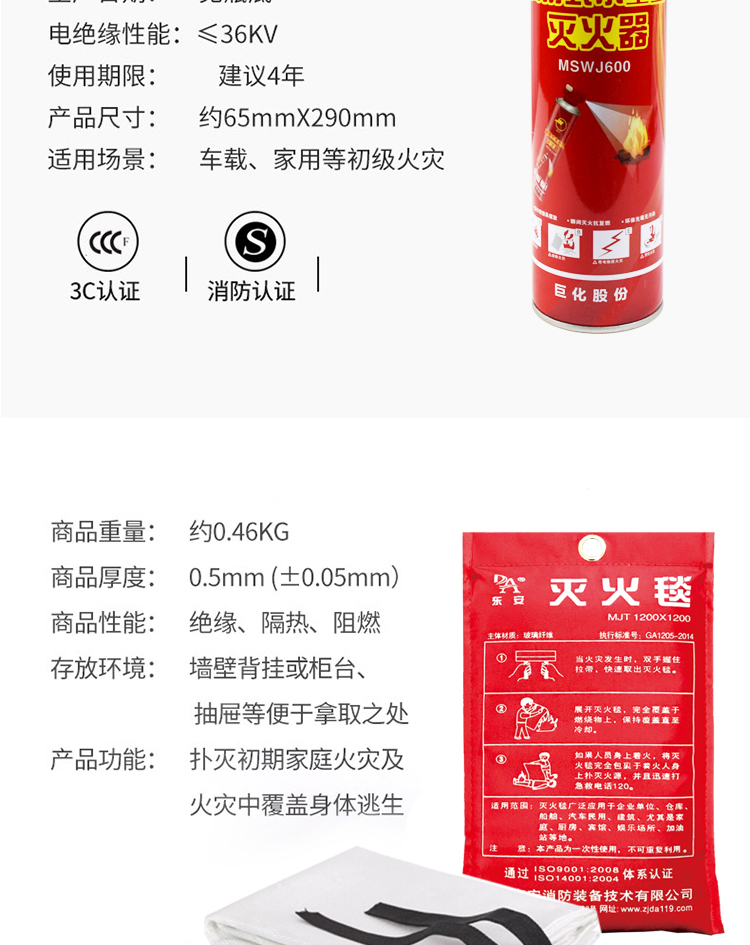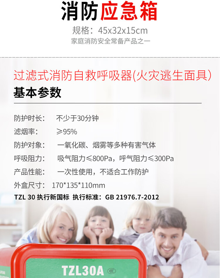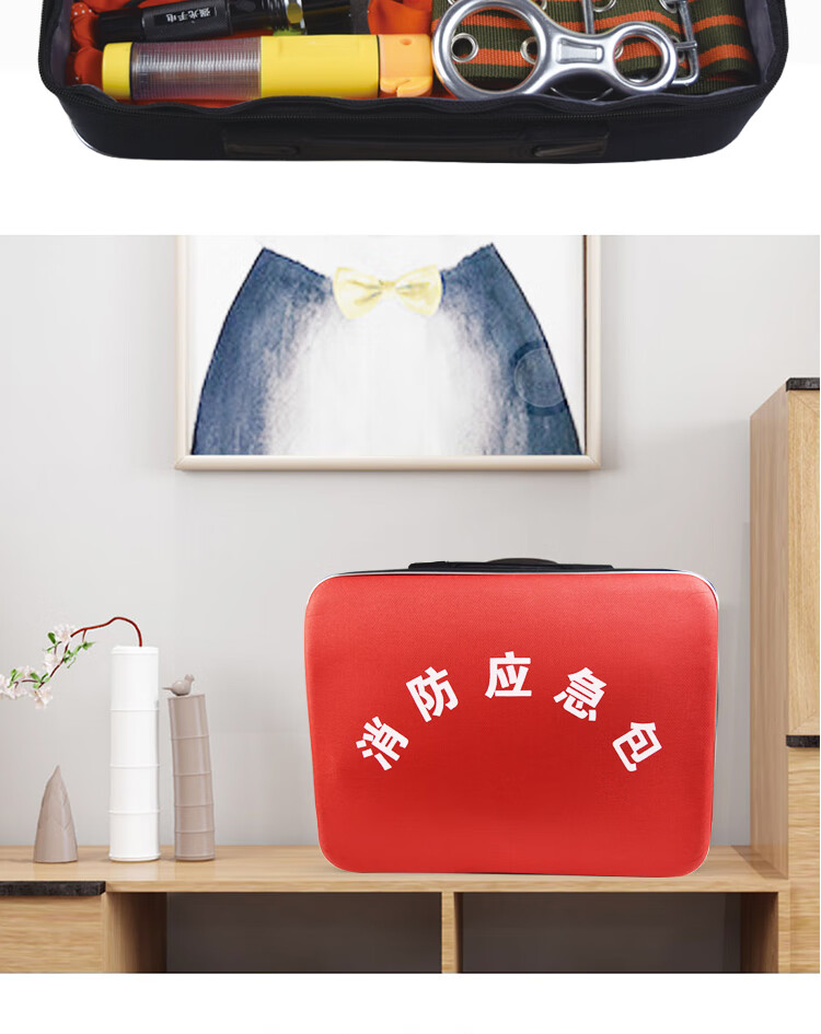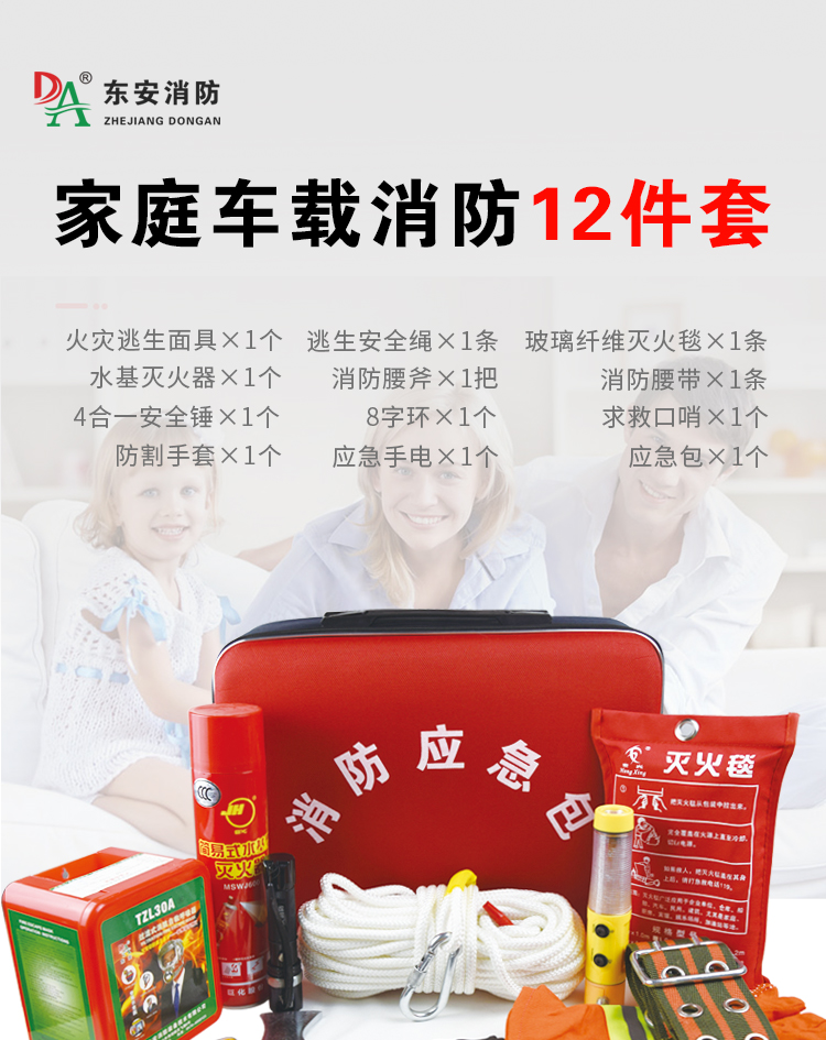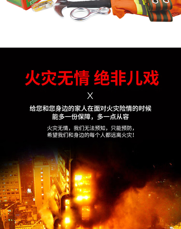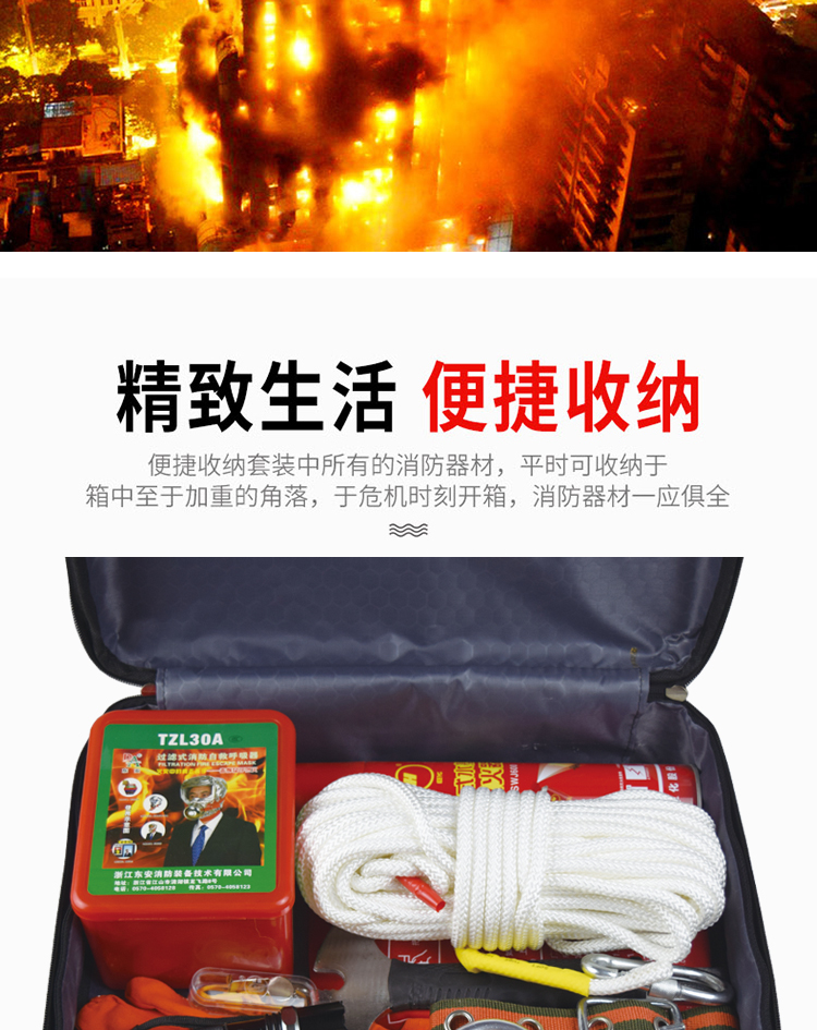东安消防人防应急包家庭高楼逃生消防套装一家3口火灾高空救生工具包火灾自救应急12件套 自营