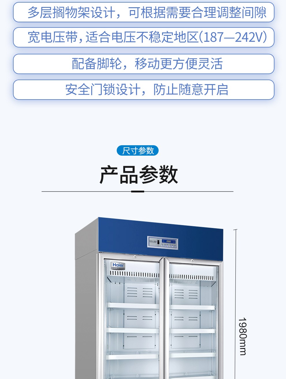 海尔生物医疗haier医用冰箱柜恒温箱调温控温药品冷藏阴凉箱保冷箱保温箱1031L