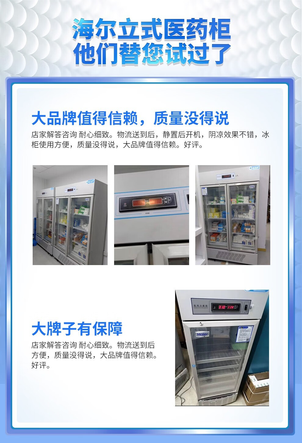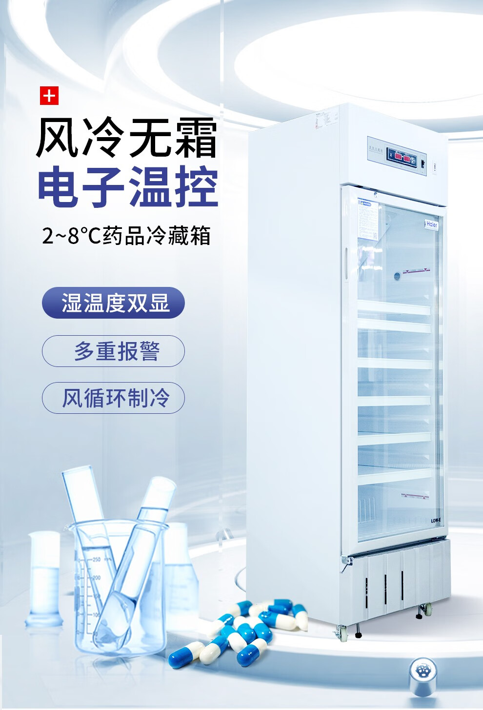 海尔(Haier)立式单温药品展示柜2-8℃药品冷藏箱 无霜风冷医药品保鲜冰柜小型 (带锁)