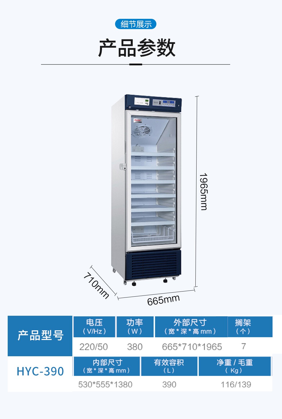 海尔(Haier)医用冷藏柜2-8℃药品阴凉冷藏箱风冷无霜冰箱医药医疗机构医院试剂保鲜柜实验室展示冰箱HYC-310S