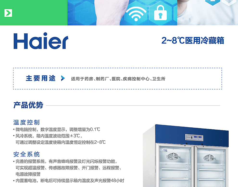海尔(Haier)650升药品冷藏箱 2-8度实验室风冷无霜双门冷柜 专用保存箱电脑控温超温报警冰柜HYC-650 自营
