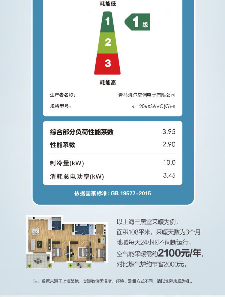 海尔(Haier)热泵采暖机低温家用冷暖空调一体全屋取暖设备5P冷暖-低温变频RF120RXSAVC(G)-B 自营