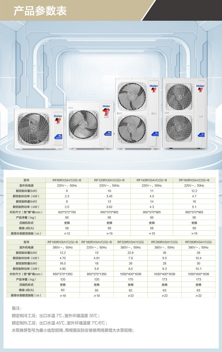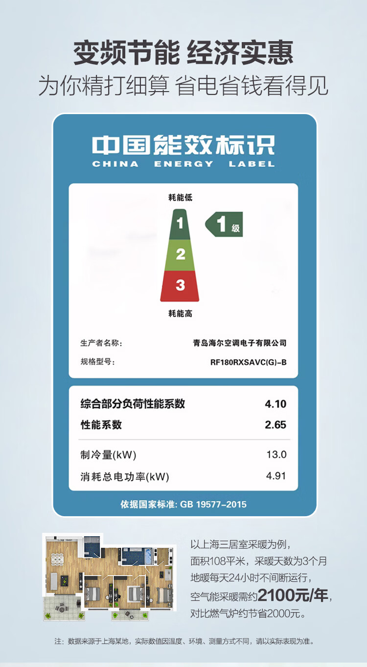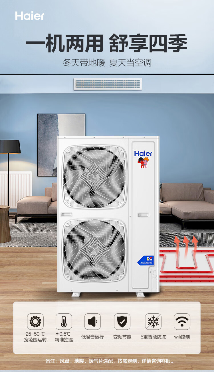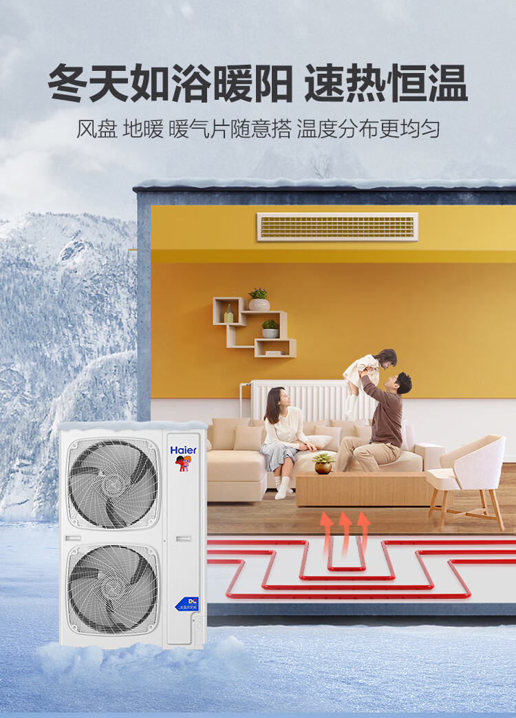 海尔(Haier)热泵采暖机低温家用冷暖空调一体全屋取暖设备7P冷暖-低温变频220V RF180RXSAVC(G)-B 自营