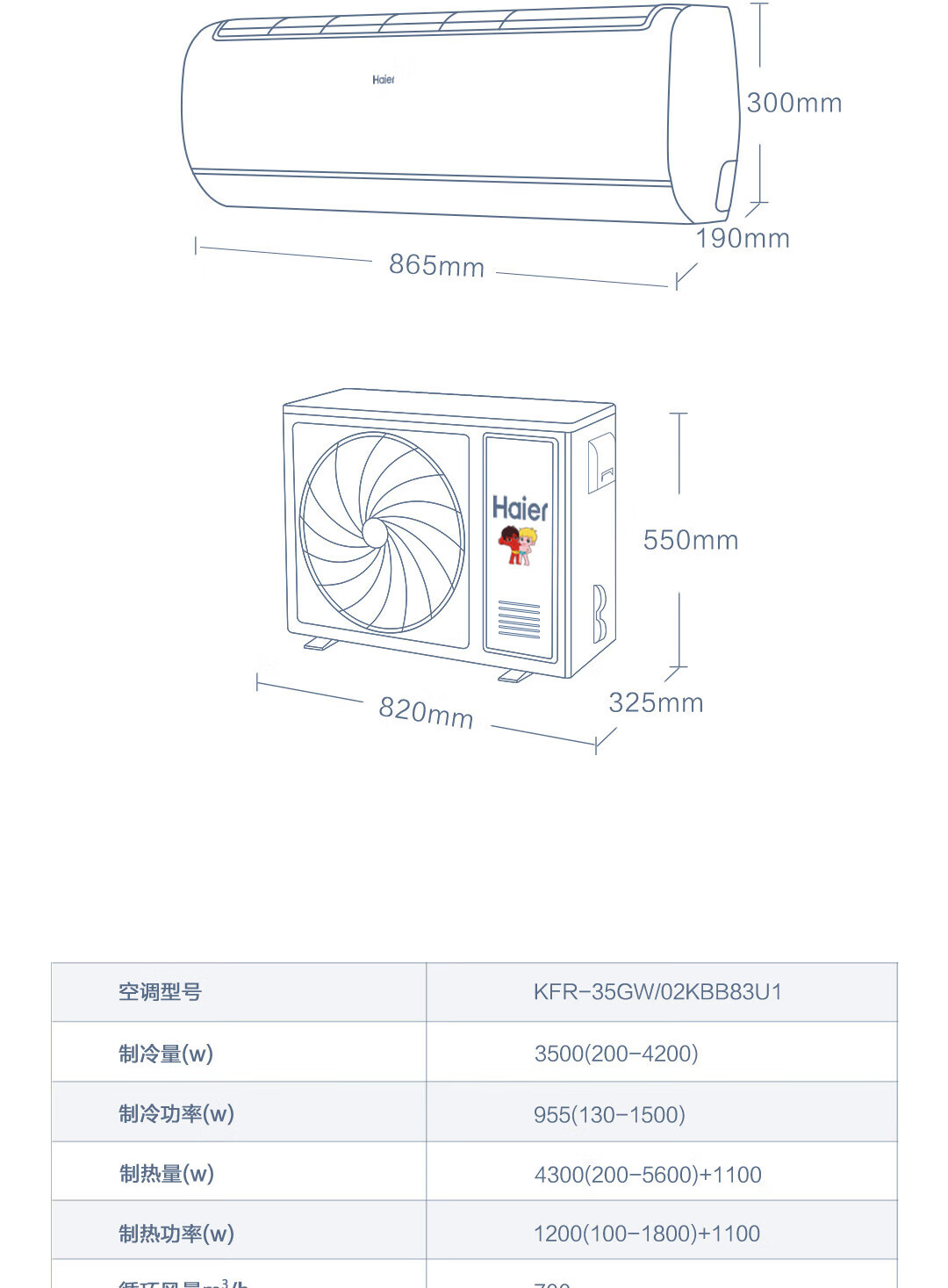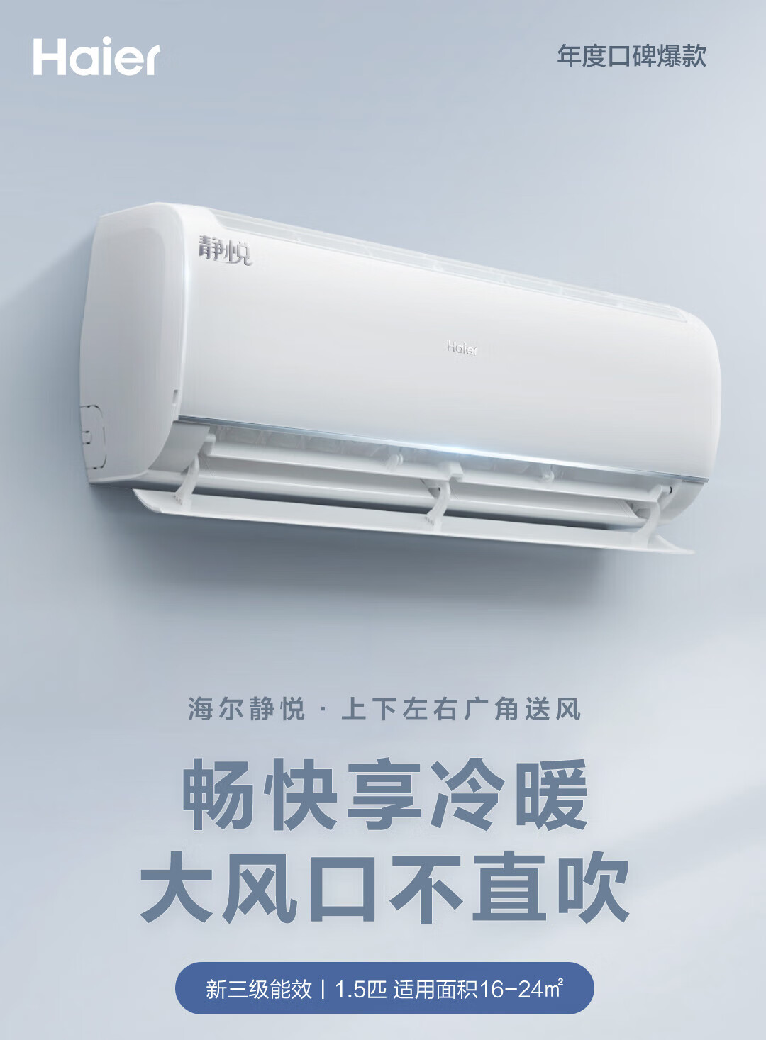 海尔(Haier)壁挂式空调大1.5匹挂机变频 三级能效 卧室冷暖 自清洁KFR-35GW/02KBB83U1 自营