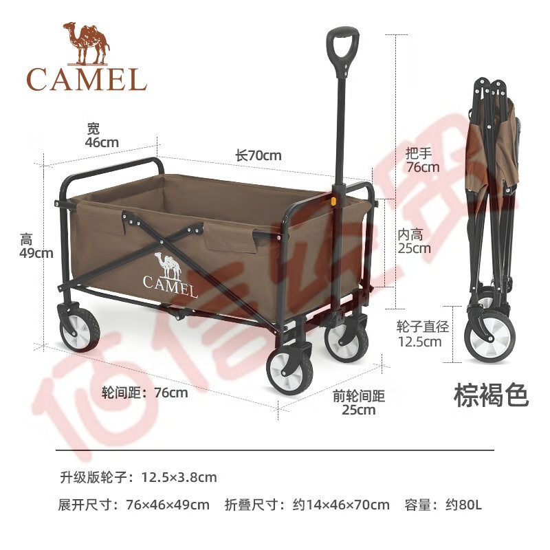 骆驼(CAMEL) 户外营地车露营野餐车便携折叠推车郊游野营拖车摆摊手拉小车 1J32265020,棕褐色 自营