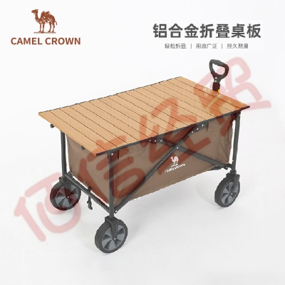 骆驼CAMELCROWN户外露营折叠桌板营地车铝合金桌面野营野餐小推车盖板桌子 1J722C7653,原木色,2.8kg 自营