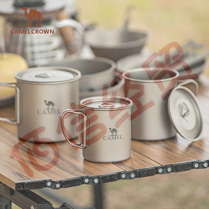 骆驼CAMELCROWN户外精致露营餐具野餐烧烤便携不锈钢野营装备纯钛多功能刀叉套装 1152263009,大号杯,650ML 自营