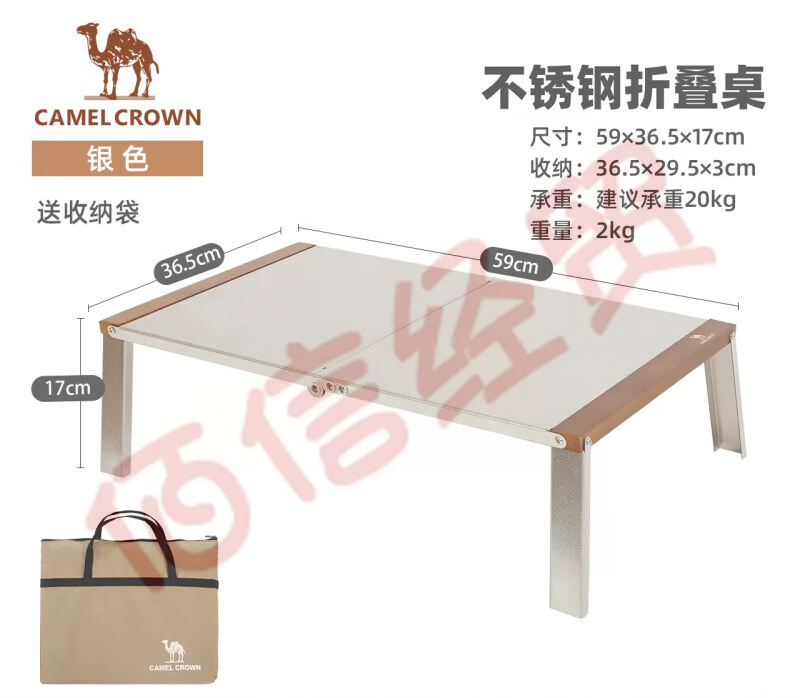 骆驼CAMELCROWN户外便携不锈钢折叠桌精致露营摆摊夜市野餐桌子野营简易长桌 1J32350509,不锈钢桌 自营