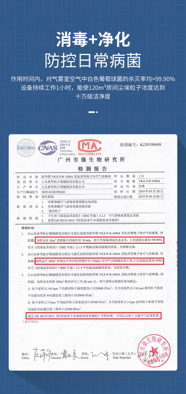 新华医疗(shinva)等离子体空气消毒器 医用空气净化器 消毒机家用杀菌可移动壁挂除异味 移动式/PY1000AD 自营