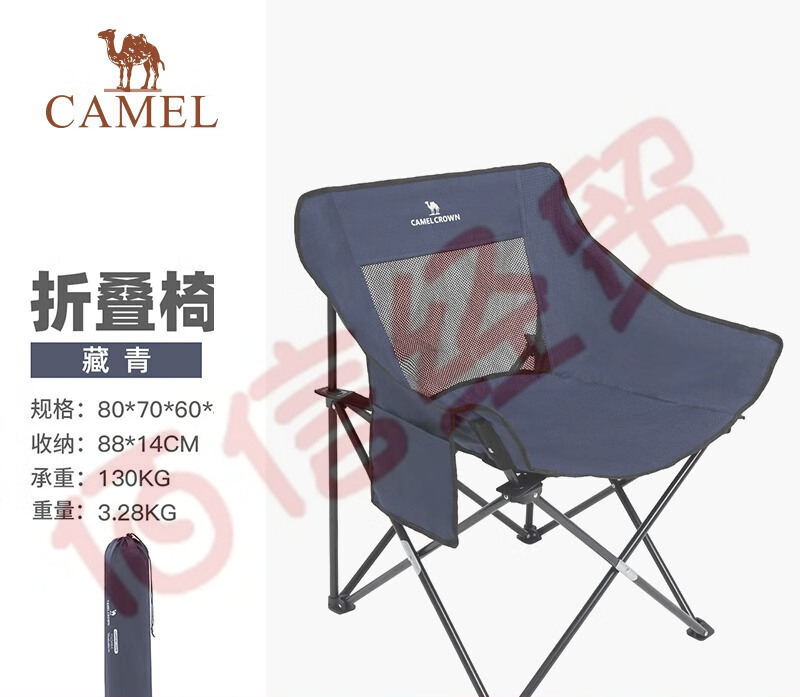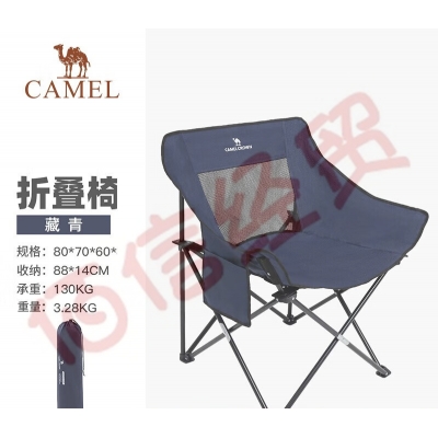 骆驼(CAMEL)户外折叠椅子便携式超轻露营钓鱼凳月亮椅铝合金靠背椅野餐折叠凳 A1W3HD103,藏青 自营