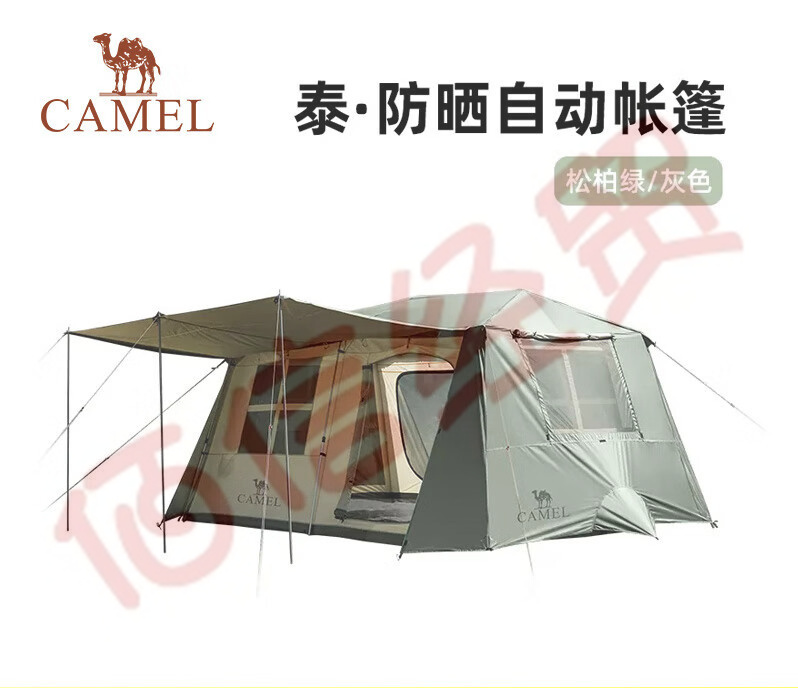 骆驼(CAMEL)户外自动帐篷【泰】精致露营涂银防晒UPF50+防雨折叠式野营装备 133BANA033,松柏绿/灰色 自营