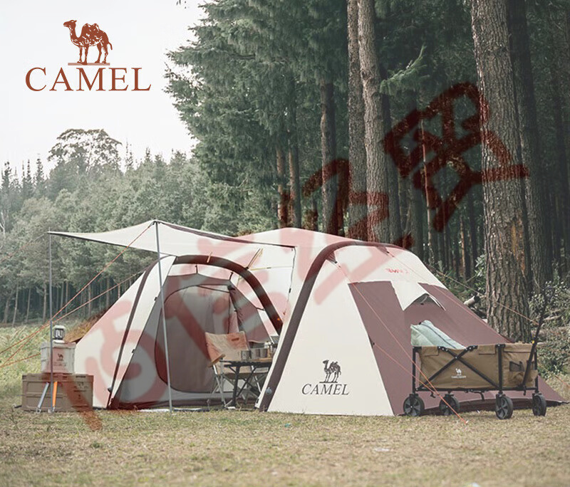 骆驼(CAMEL)【猎户座I】户外充气帐篷精致露营两室一厅遮阳防雨野营便携帐篷 V103,米白/咖啡(双极星) 自营