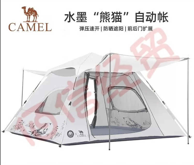 骆驼(CAMEL)[熊猫]户外帐篷便携式全自动露营野餐野外防雨防晒速开双门天幕帐 米白色【UPF50+涂银】双门弹压 自营