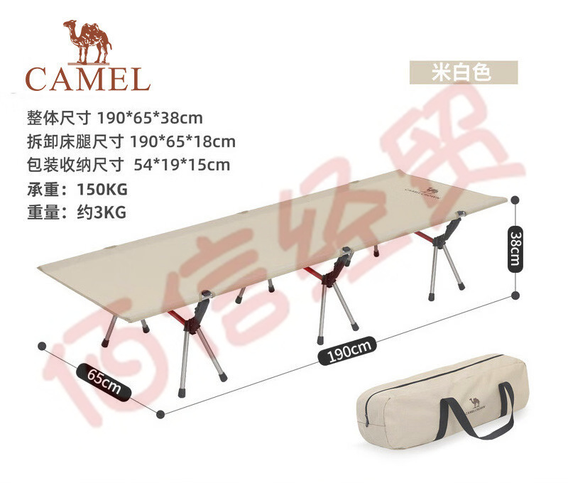 骆驼(CAMEL)户外精致露营折叠床轻量便携车载露营床轻便铝合金单人床 1142253038,米白 自营