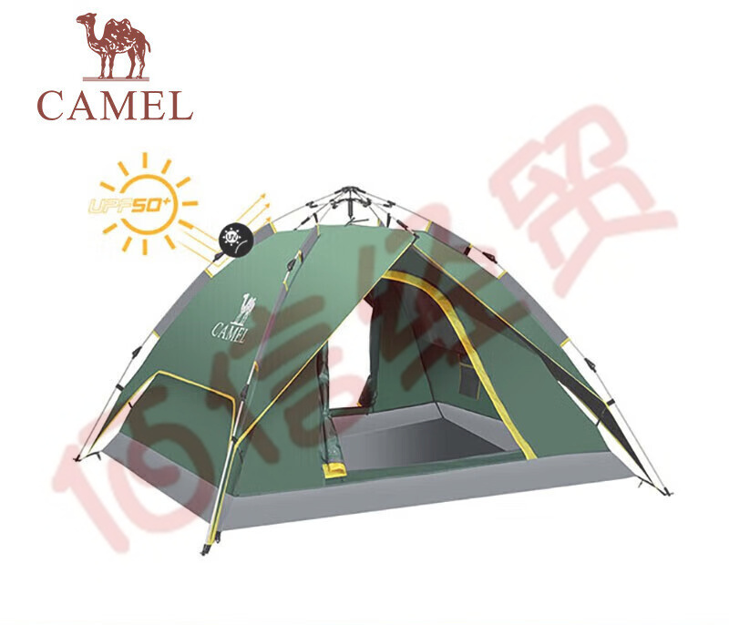 骆驼(CAMEL)户外黑胶帐篷便携式折叠全自动加厚野餐野营双人防晒防雨 A1S3NA111-3,军绿 自营