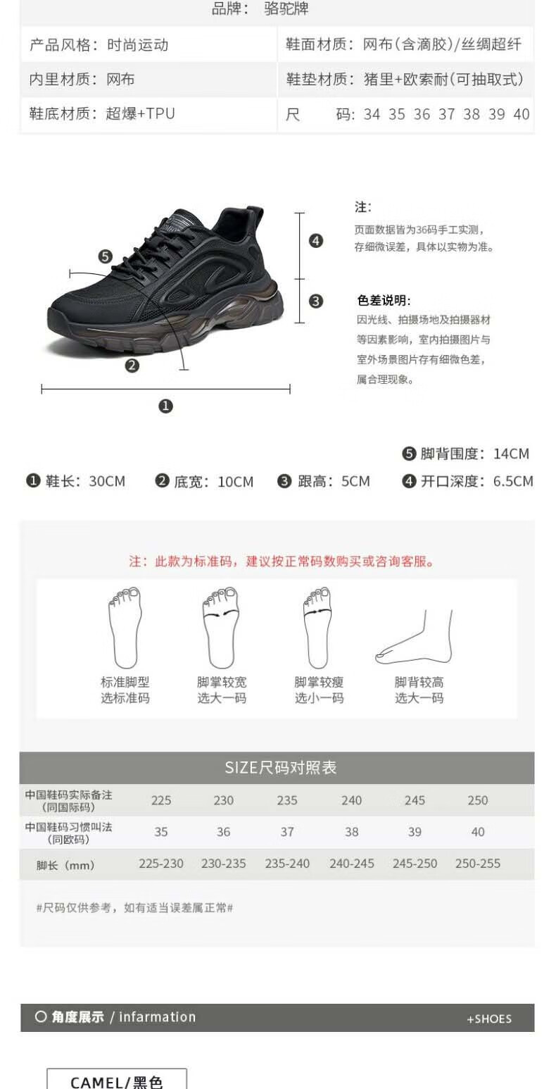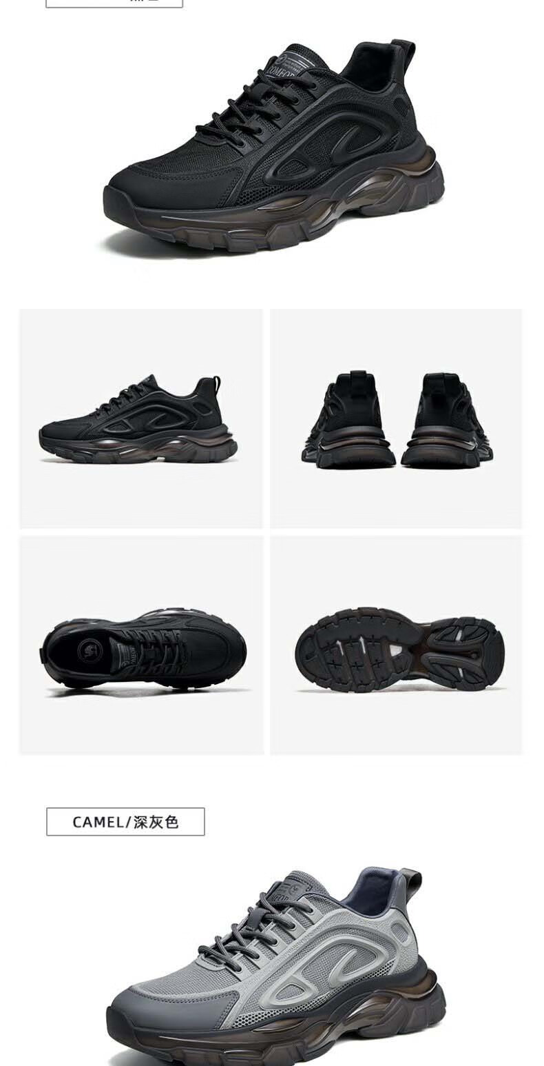骆驼(CAMEL)运动鞋男2023透气轻盈缓震软弹厚底休闲男士跑步鞋 P13A070034,黑色 38 自营
