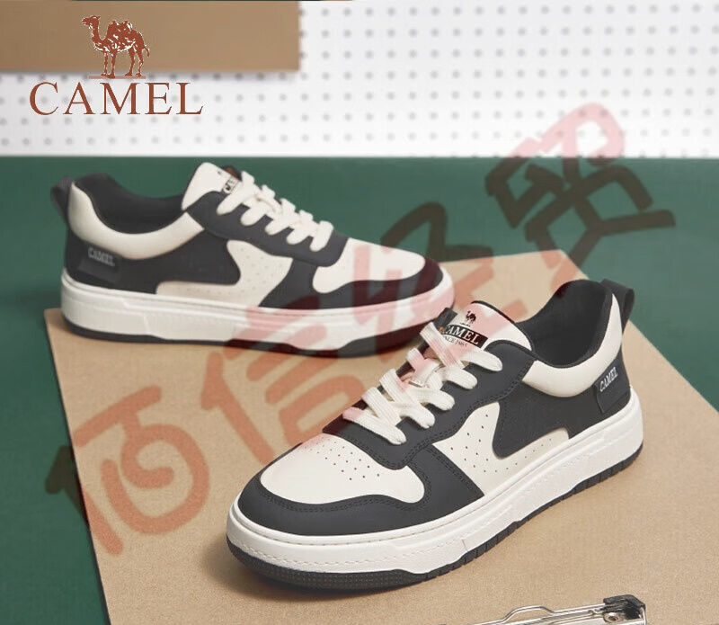 骆驼(CAMEL)男鞋2023春季撞色时尚休闲板鞋男复古百搭厚底男士运动鞋 G13S187110,米白/黑 39 自营