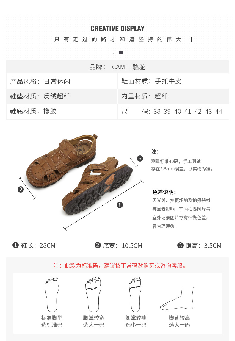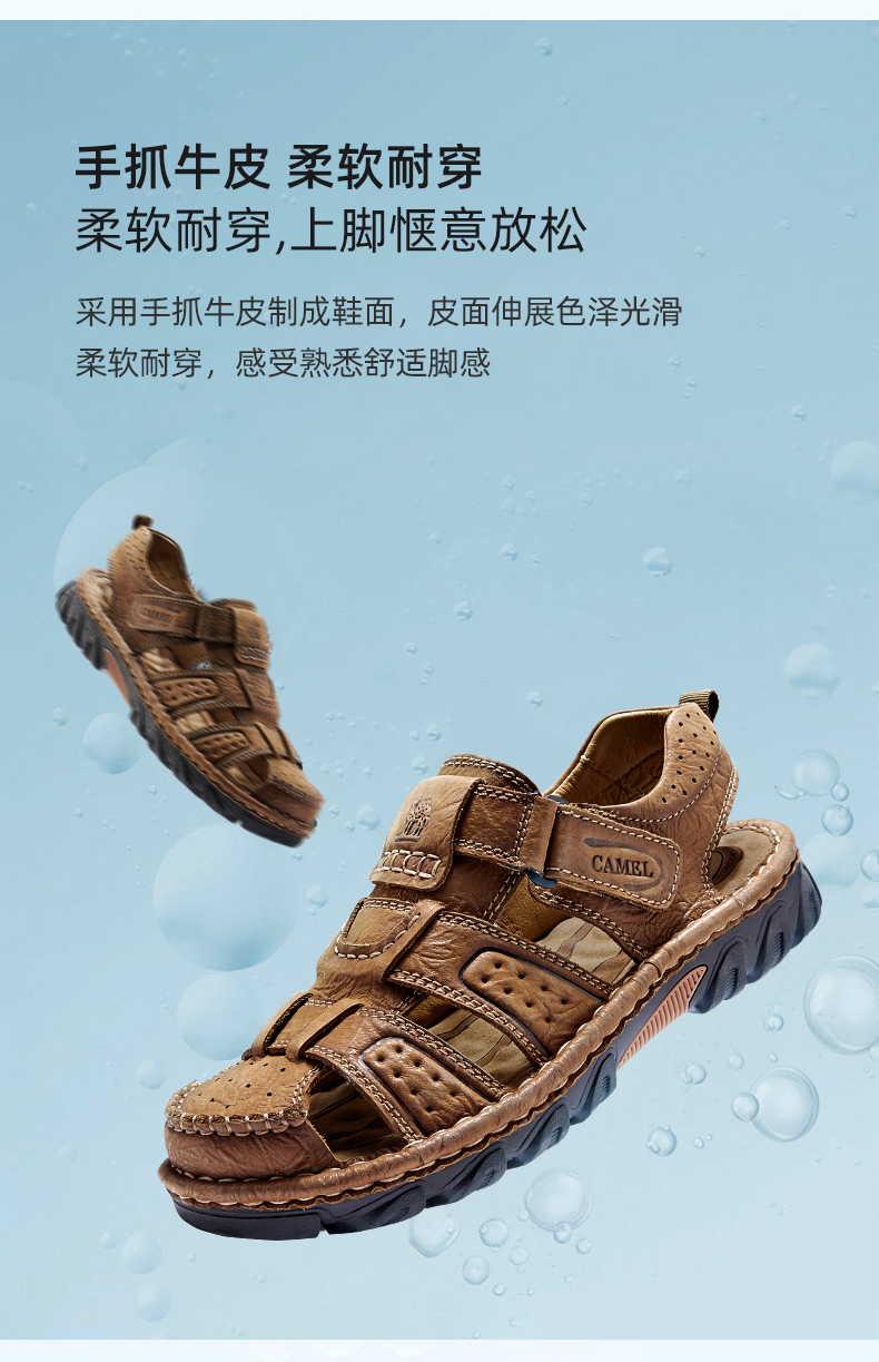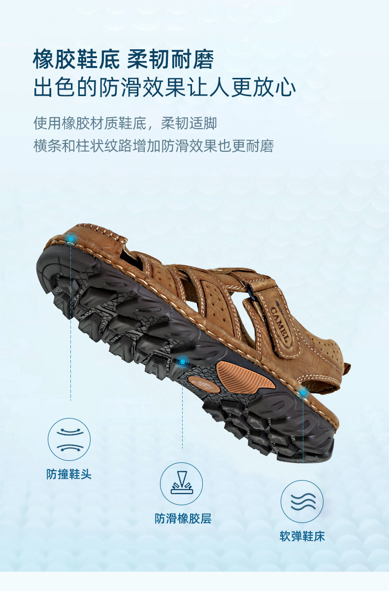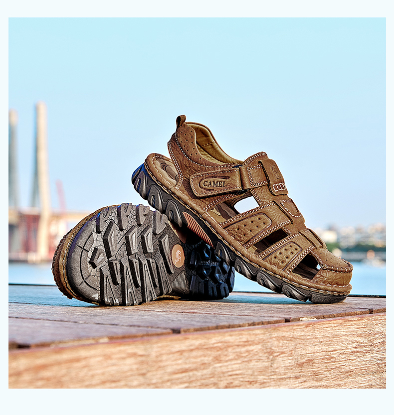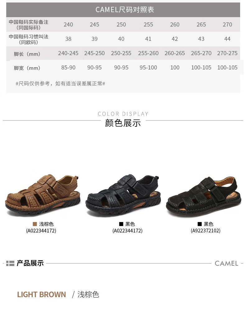 骆驼(CAMEL)男鞋春夏户外包头运动休闲凉鞋男青年百搭耐磨沙滩鞋 A022344172,浅棕,男 40 自营