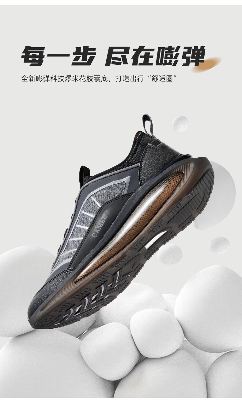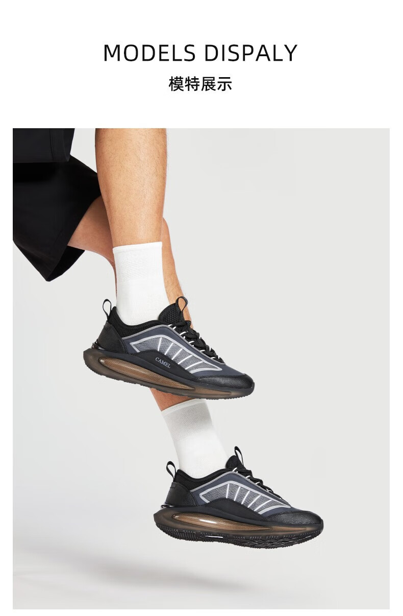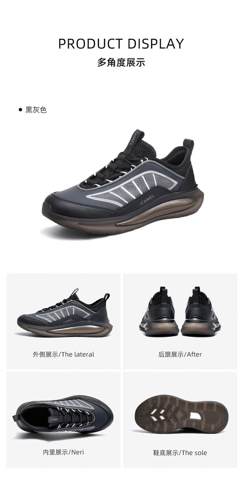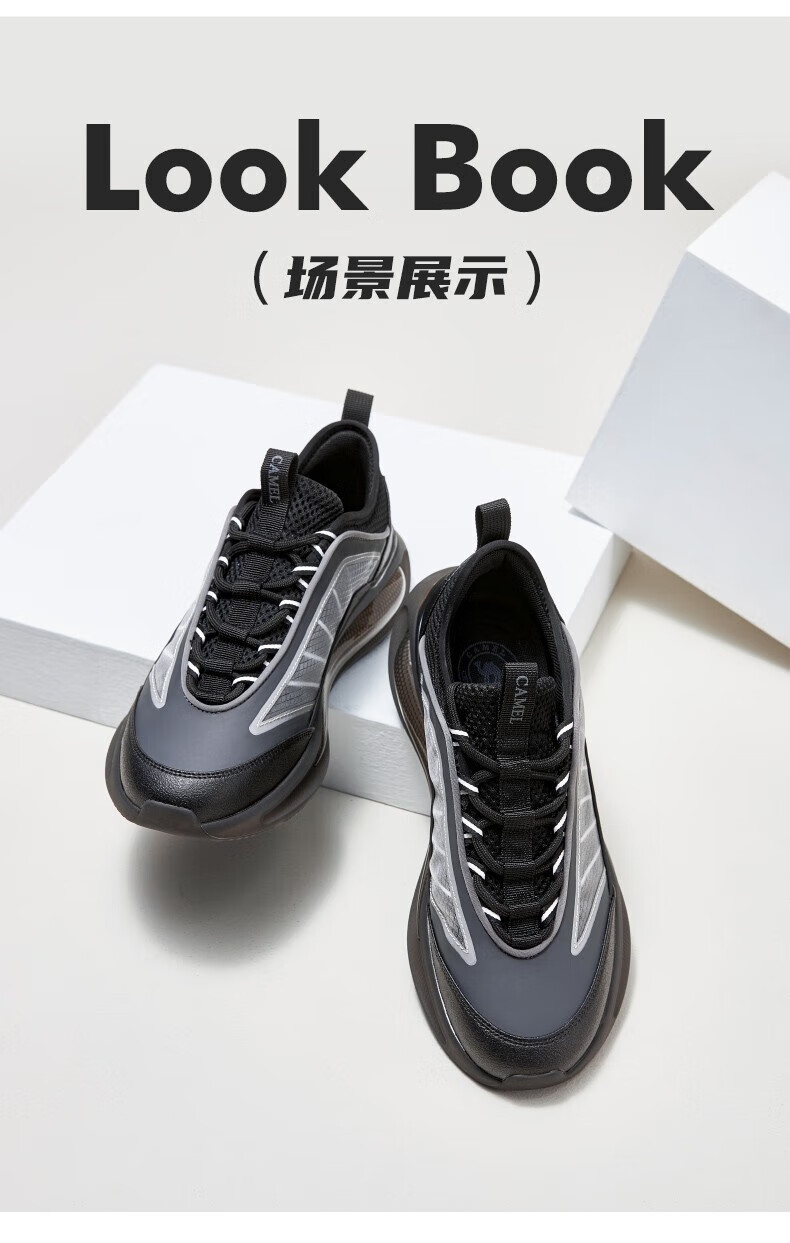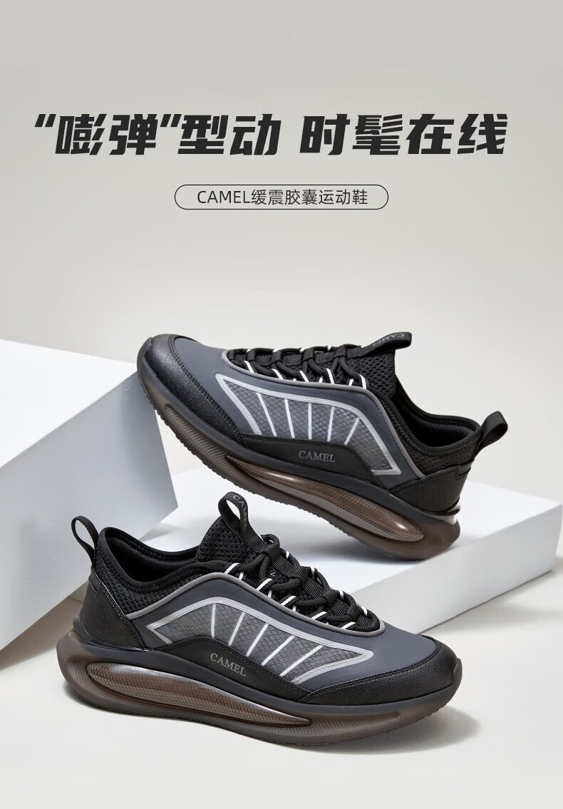 骆驼(CAMEL)官方店2023春夏季轻弹跑步鞋软底网布男士时尚休闲运动鞋 黑灰 40 自营