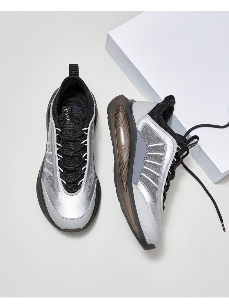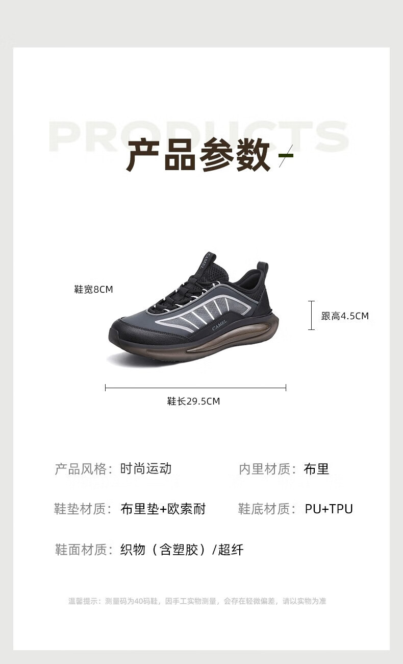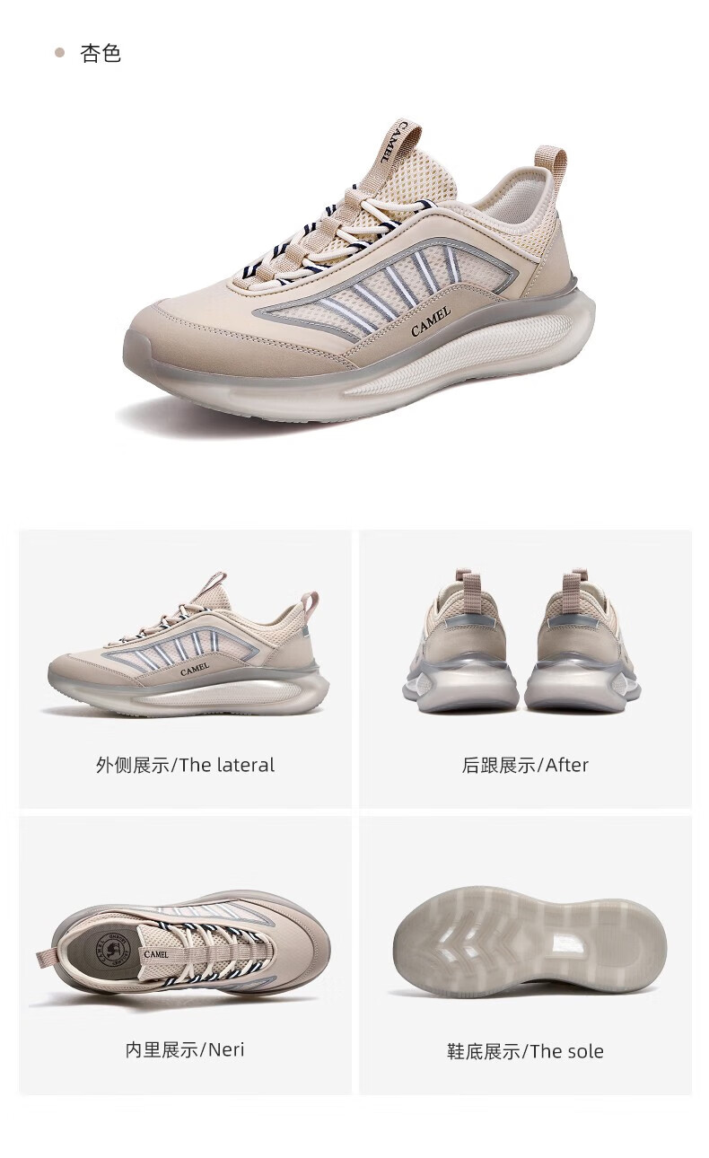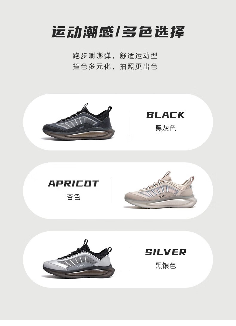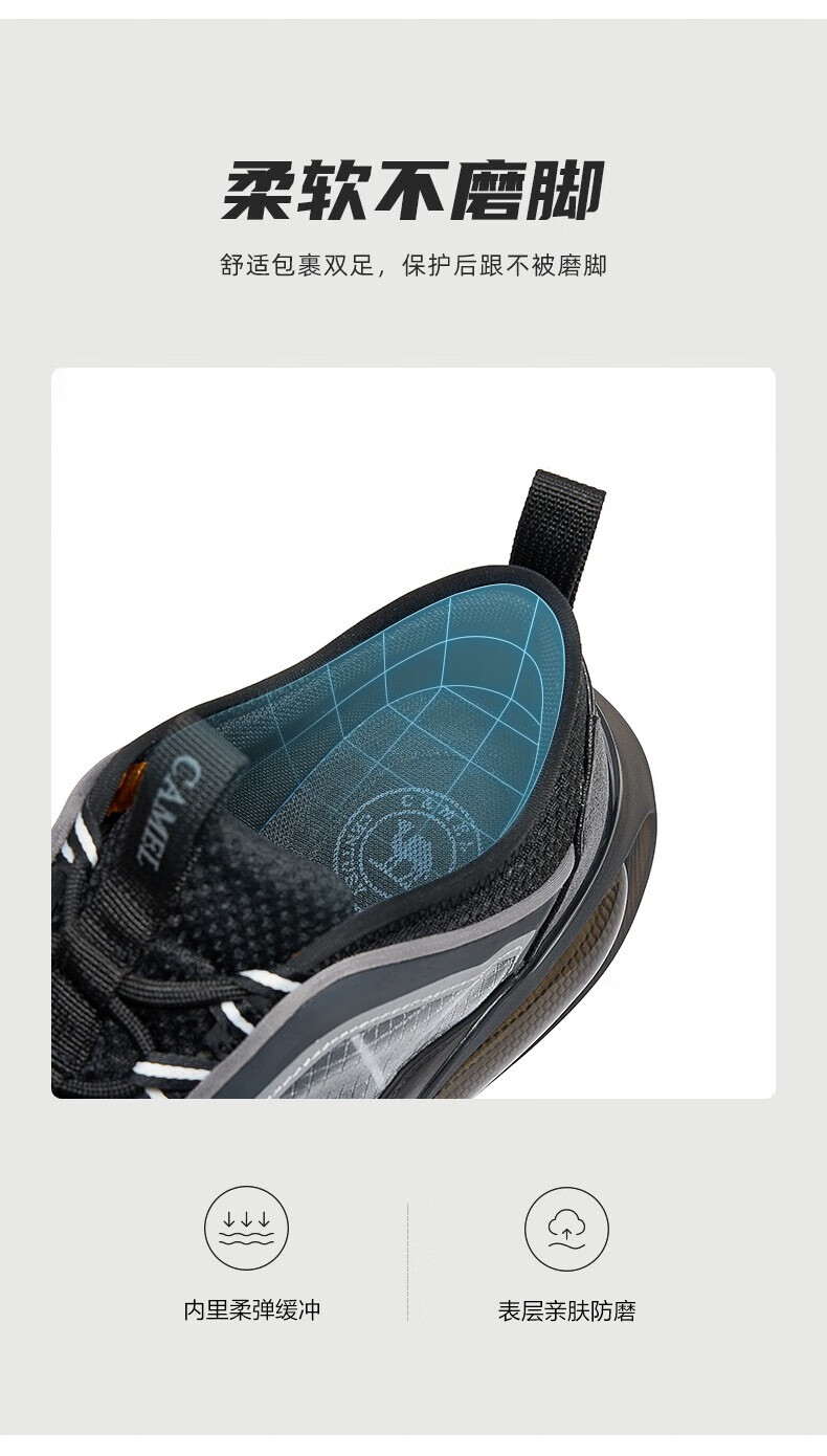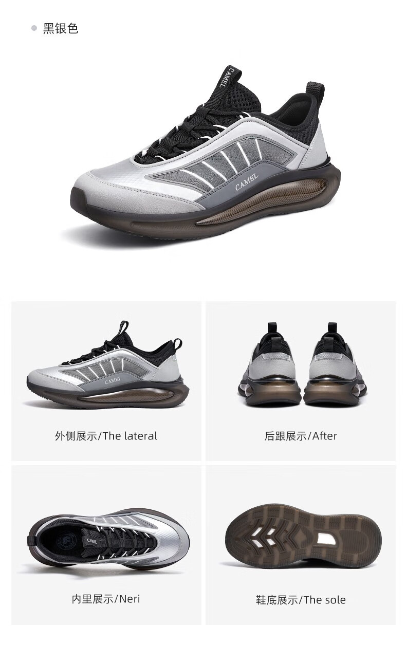 骆驼(CAMEL)官方店2023春夏季轻弹跑步鞋软底网布男士时尚休闲运动鞋 黑灰 40 自营
