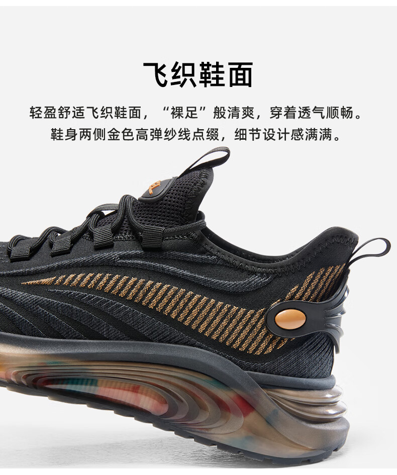 骆驼(CAMEL)男子运动鞋黑色软底舒适休闲鞋网面减震跑步鞋 CSS2210007,黑/金,男 40 自营
