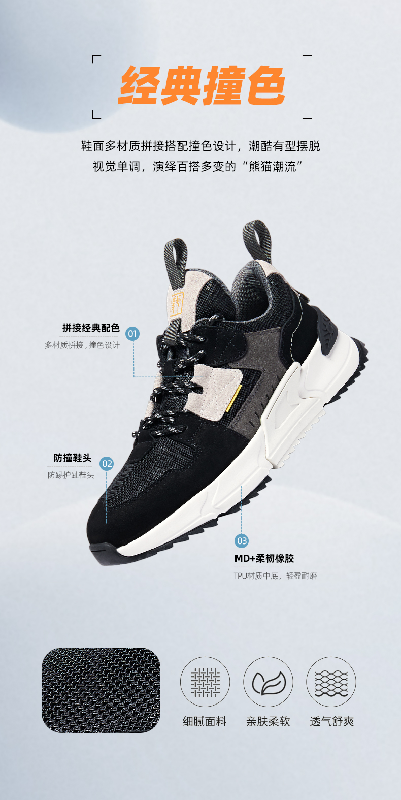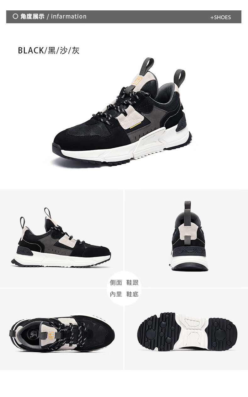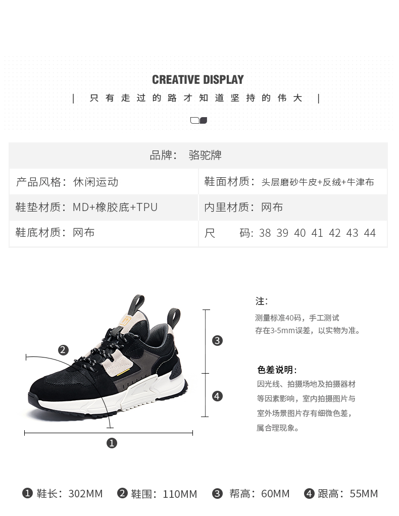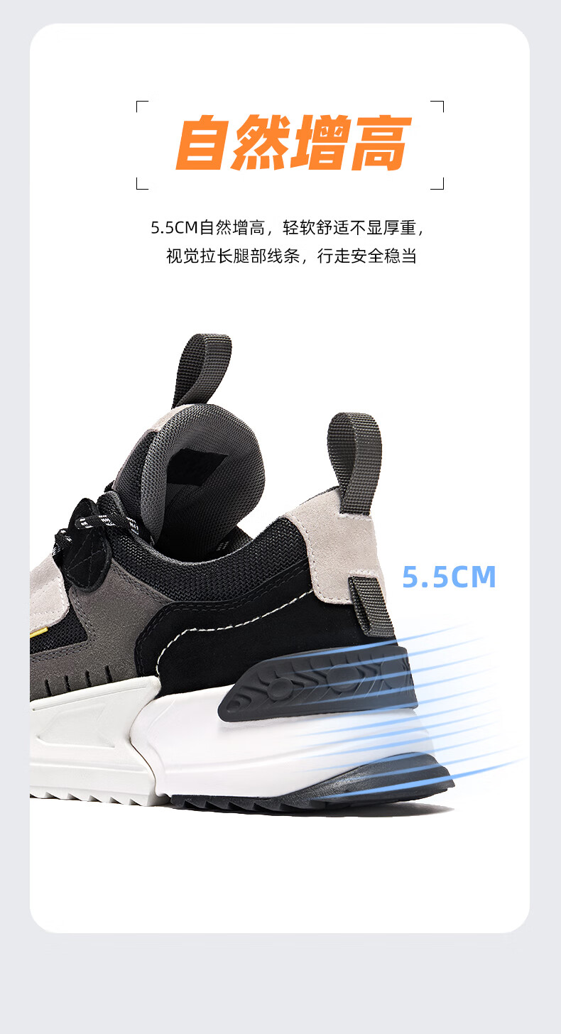 骆驼(CAMEL)男鞋休闲鞋男士内增高透气运动鞋厚底百搭男鞋潮 0360,黑/沙/灰,男款 38 自营