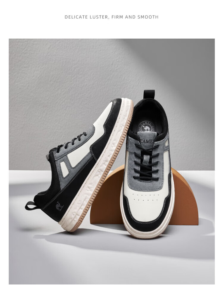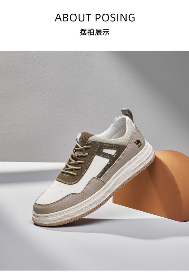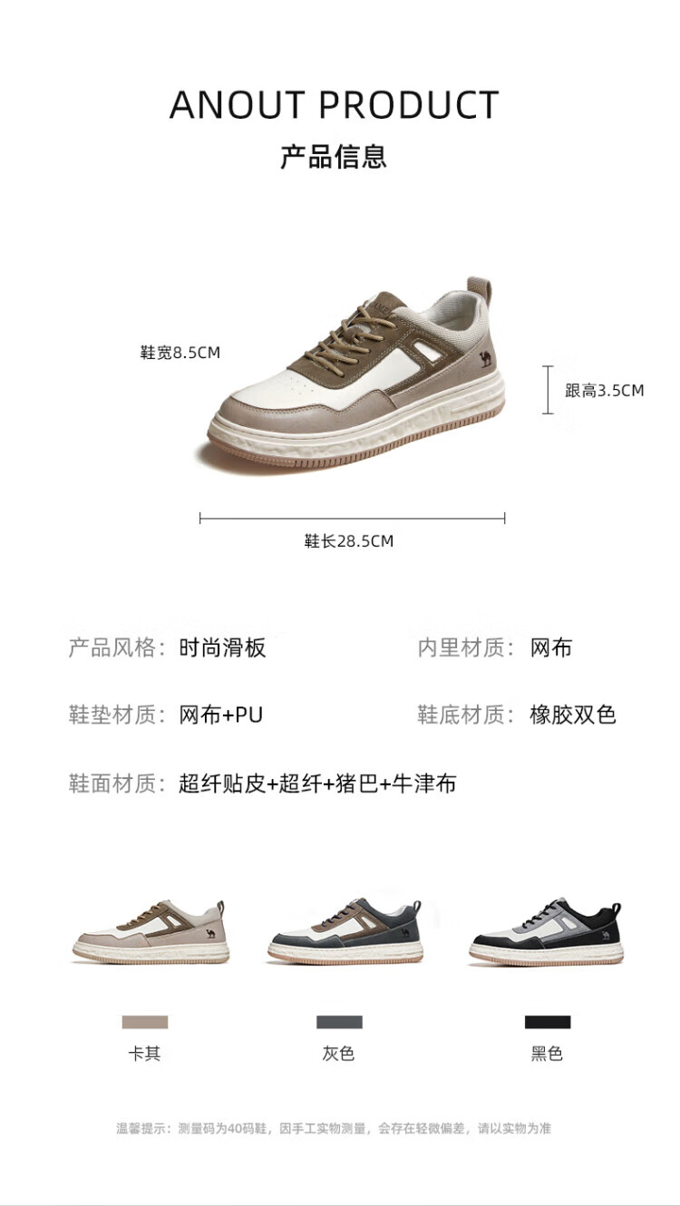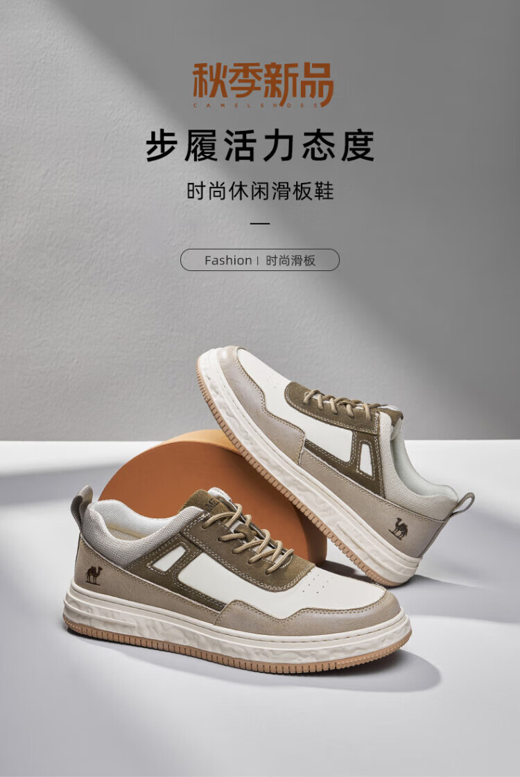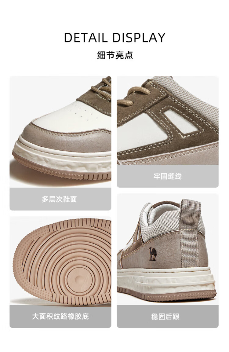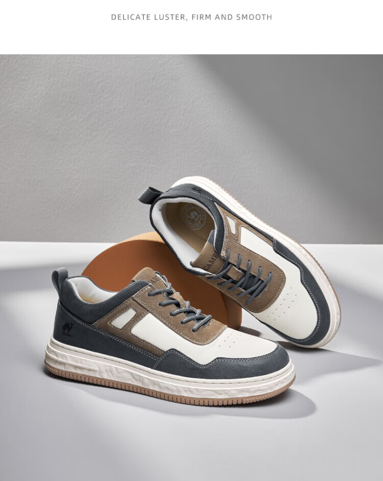 骆驼(CAMEL)男鞋款男士板鞋潮流百搭加绒小白鞋运动休闲 GE12235350R,沙/灰,男(加绒) 38 自营