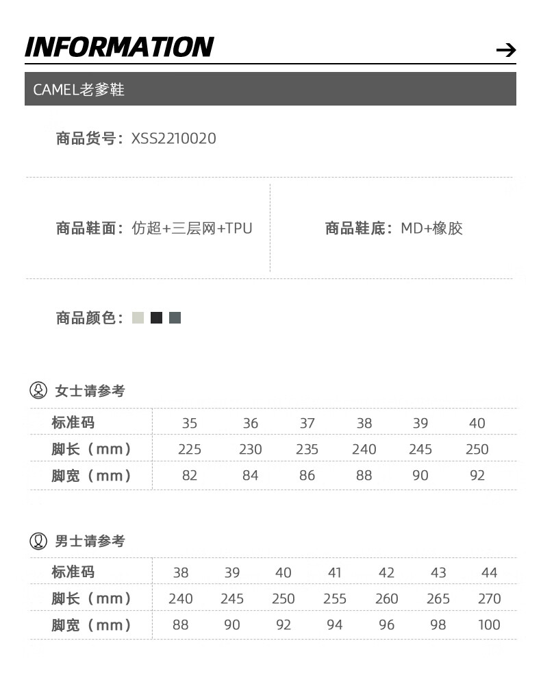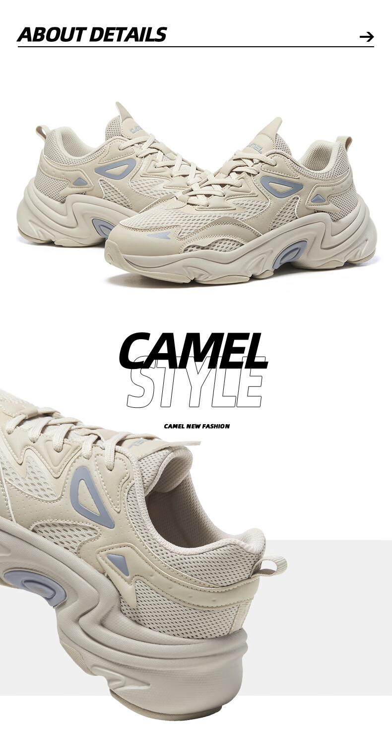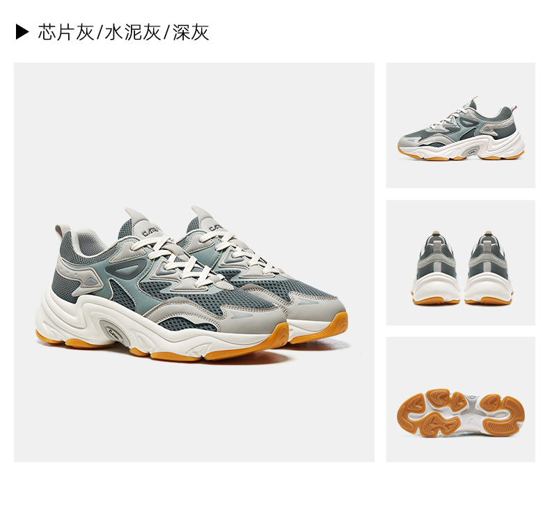 骆驼(CAMEL)【Q态潮】运动鞋男士春夏款时尚潮流厚底休闲老爹鞋 XSS2210020,芯片灰/水泥灰/深灰,男 40 自营